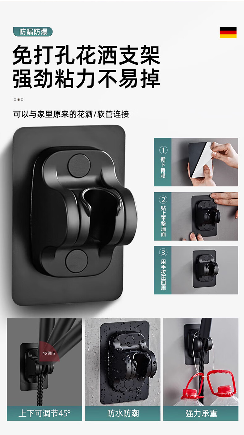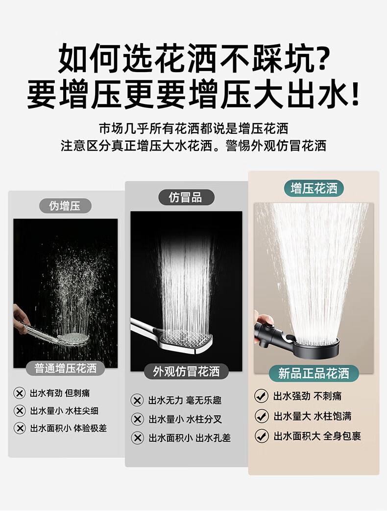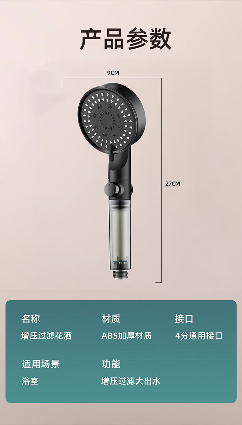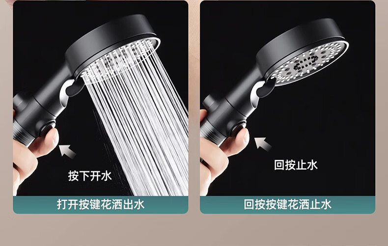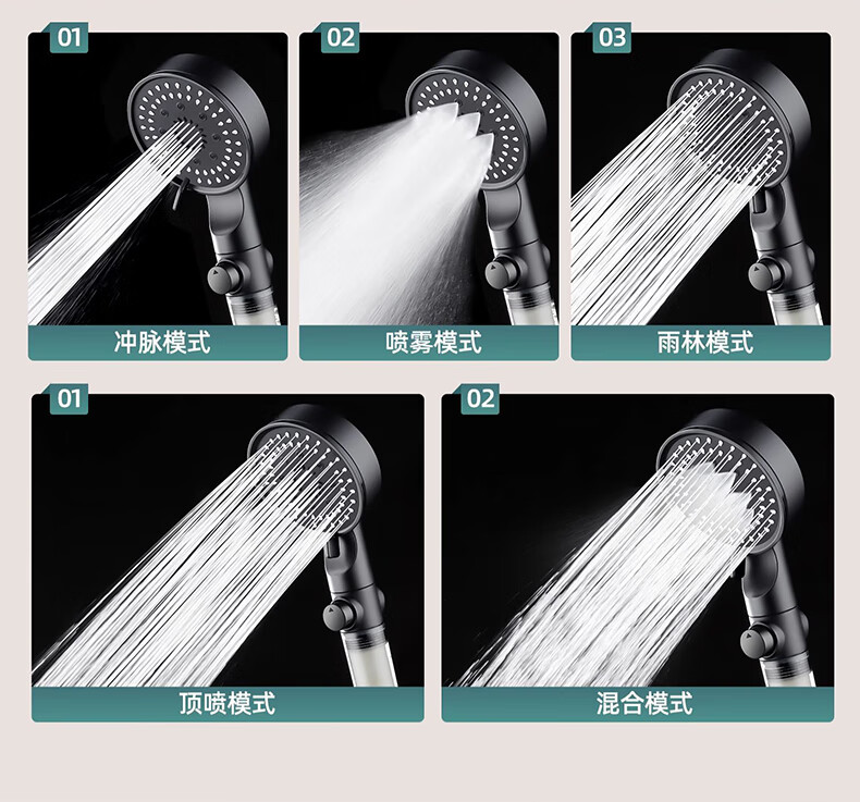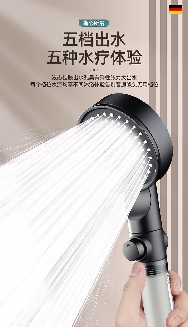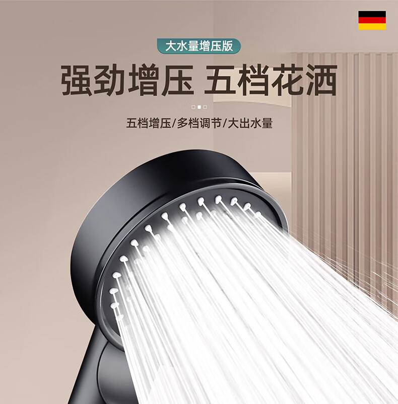 【现货现发】黑武士五档增压花洒淋浴器喷头浴室洗澡手持便携式多 黑色硬刺
