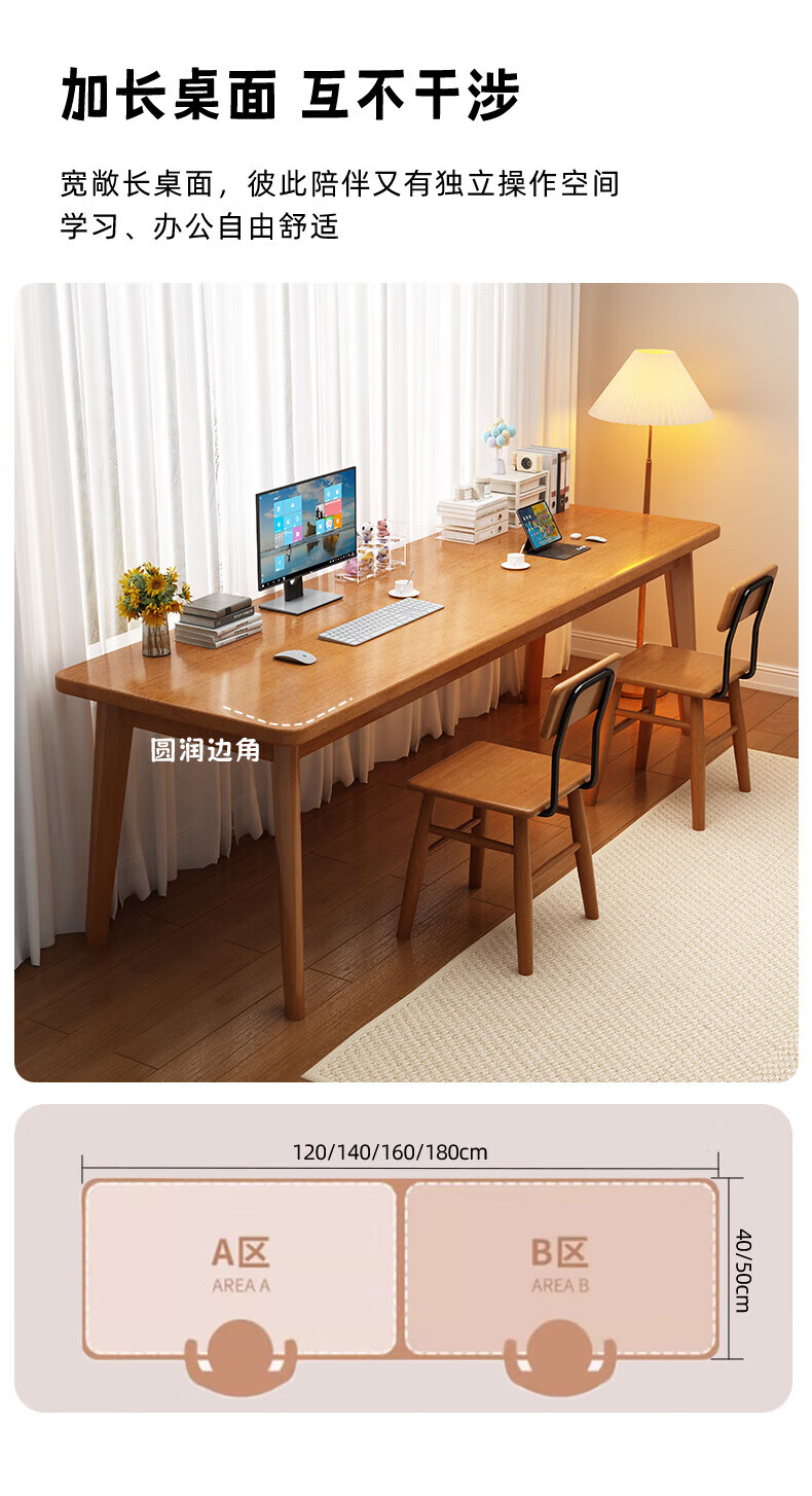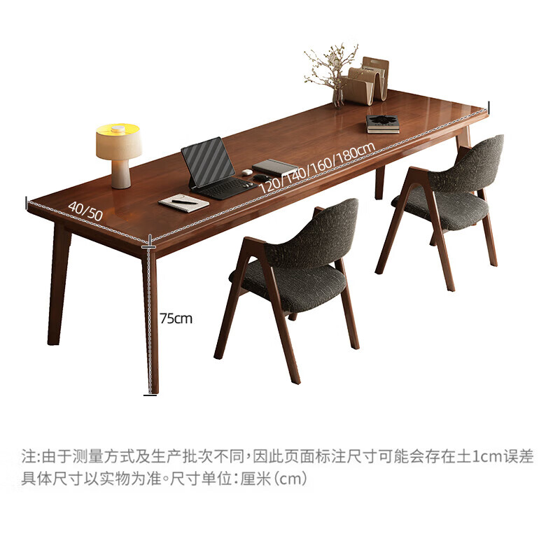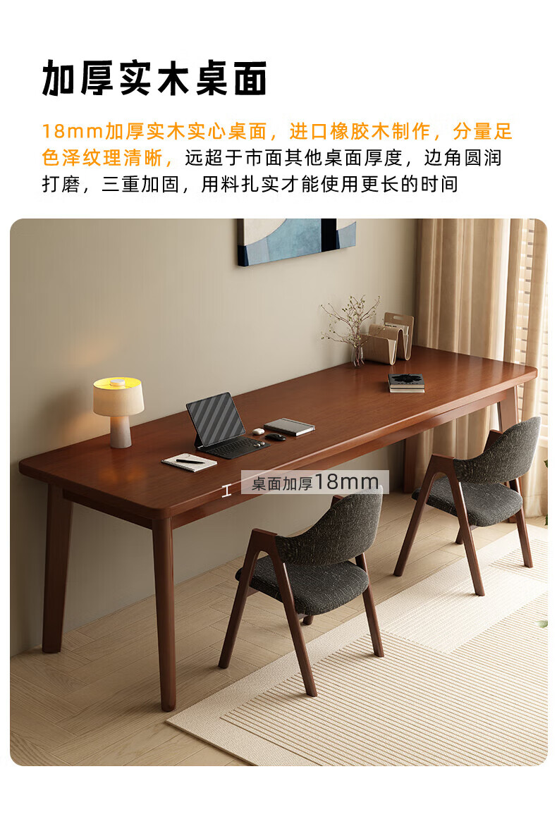 家逸(JIAYI)全实木双人书桌长条桌子靠墙窄桌书房学习桌写字桌卧室办公电脑桌 樱桃木色120*40+18mm加厚桌面