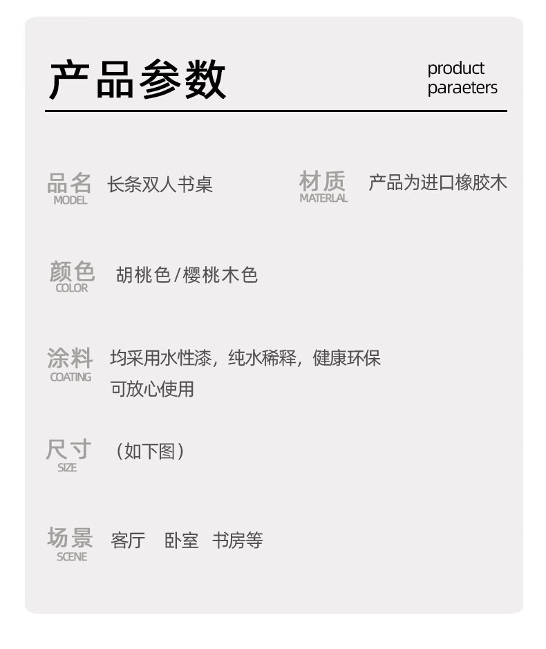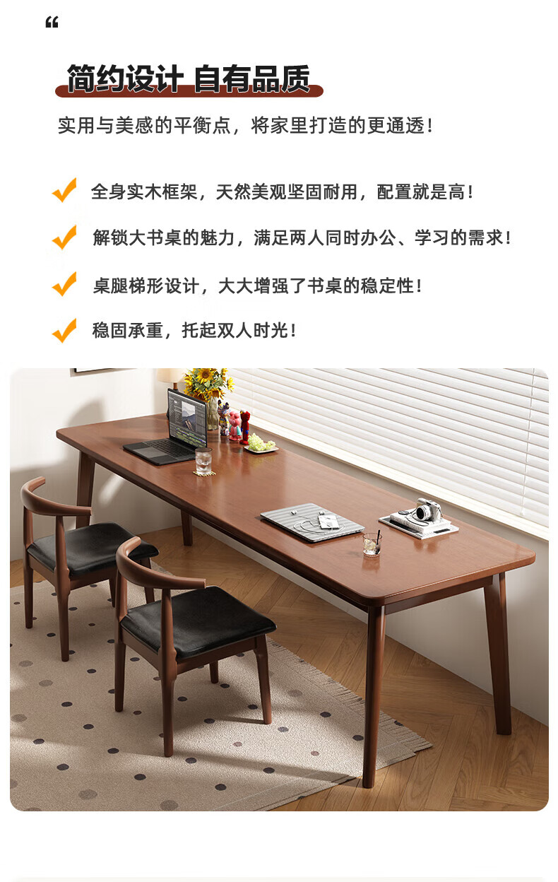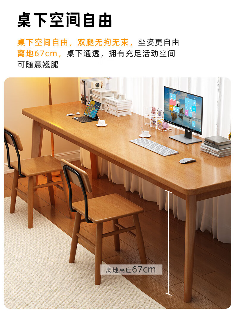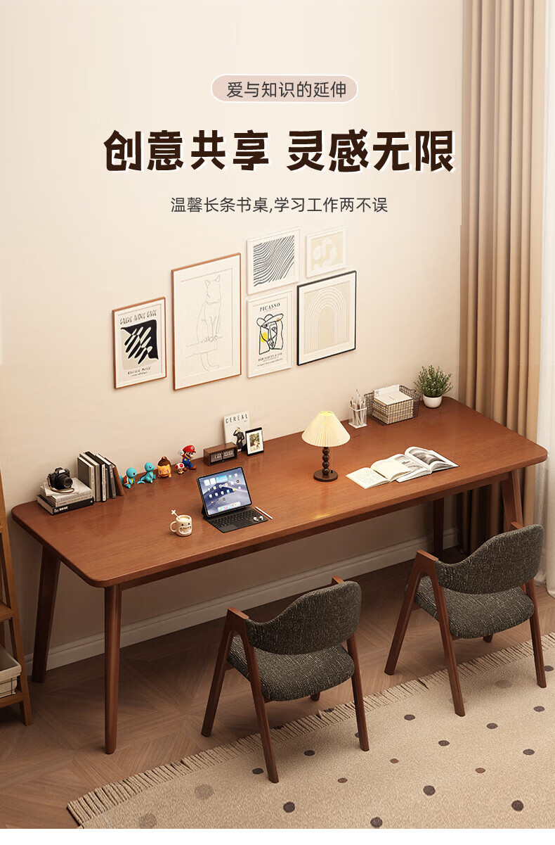 家逸(JIAYI)全实木双人书桌长条桌子靠墙窄桌书房学习桌写字桌卧室办公电脑桌 樱桃木色120*40+18mm加厚桌面