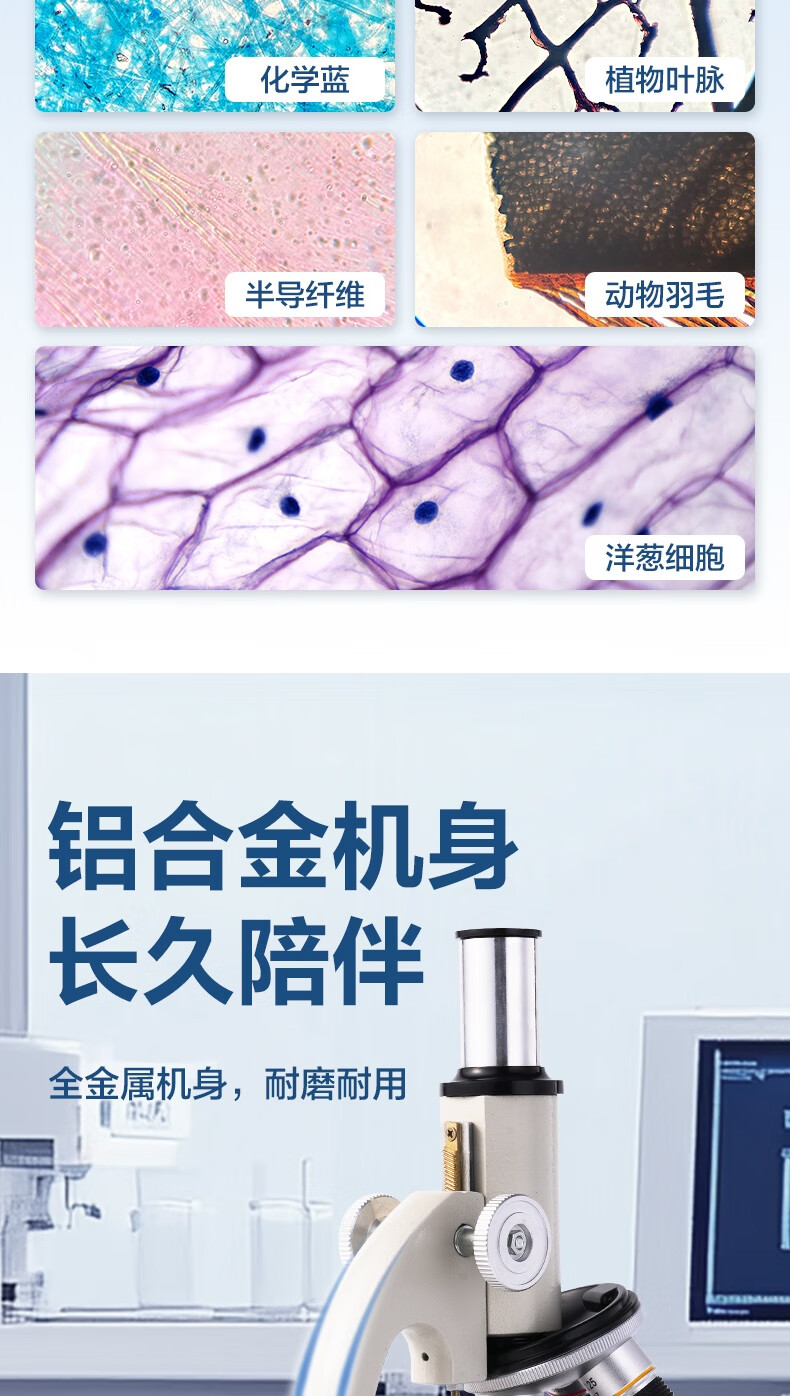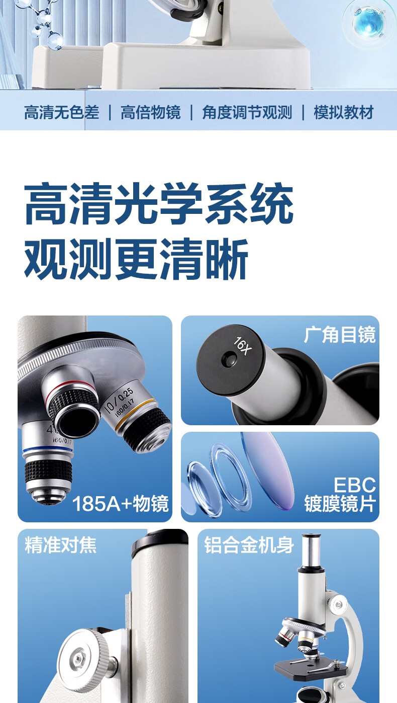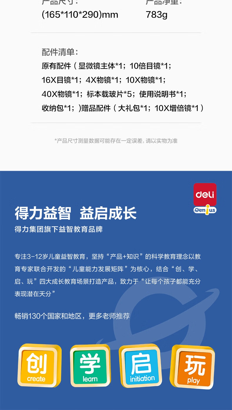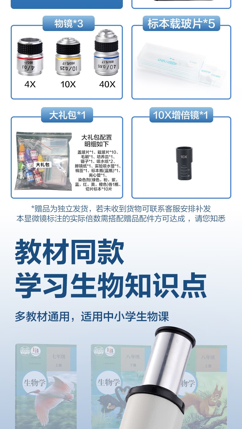 得力(deli)6400X生物光学显微镜初中生科学实验教材同步台式专业版可看细胞手持高清便携款开学文具生日礼物