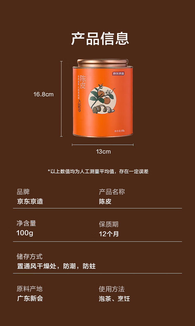 京东京造正宗新会5年陈皮100g【搭配化橘红更佳】广东新会大红皮送长辈