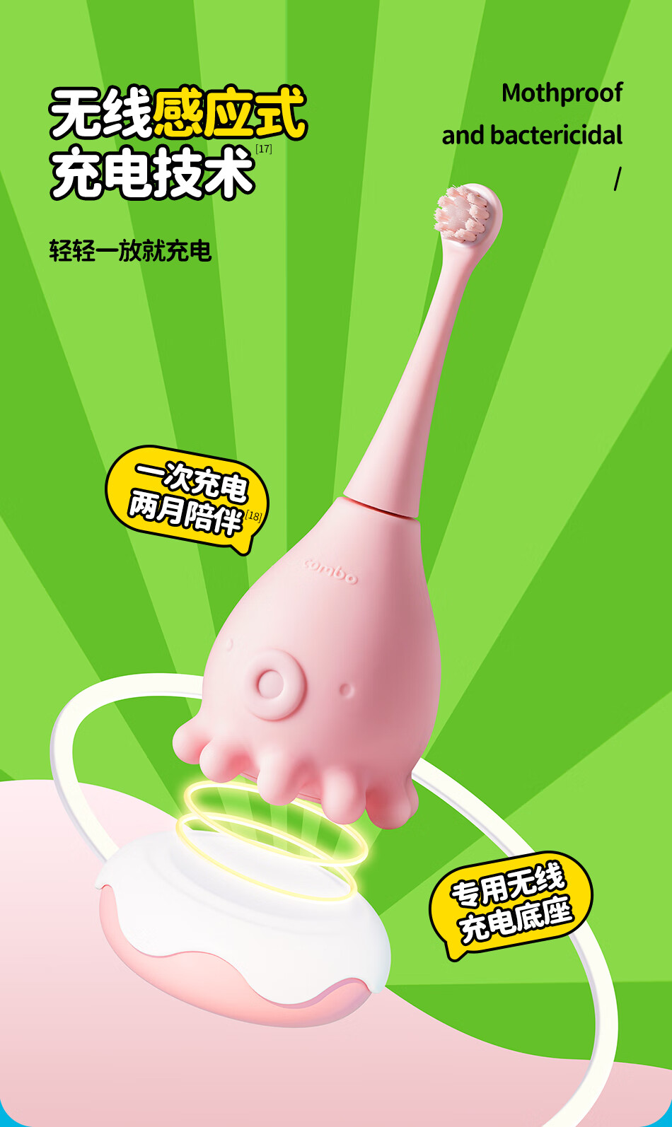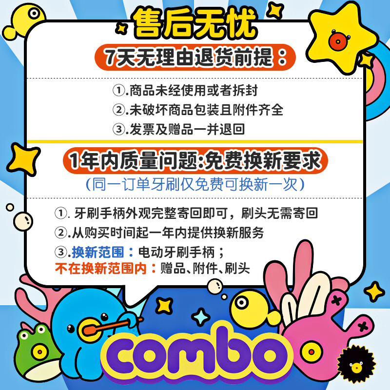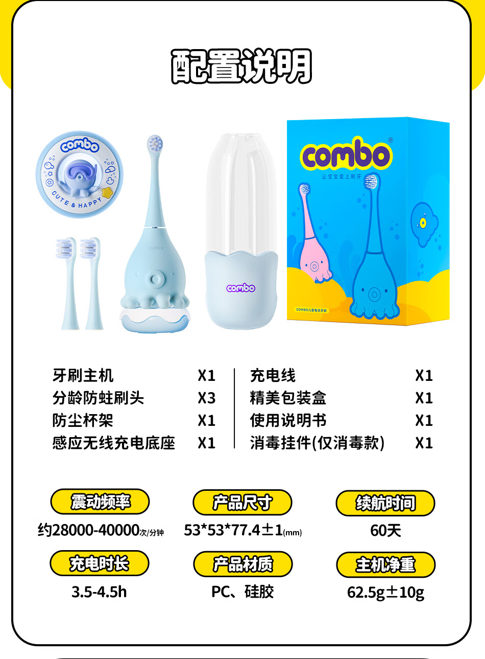 COMBO小章鱼儿童电动牙刷含氟软毛宝宝防蛀护龈声波式蓝色 适用1-3-6岁