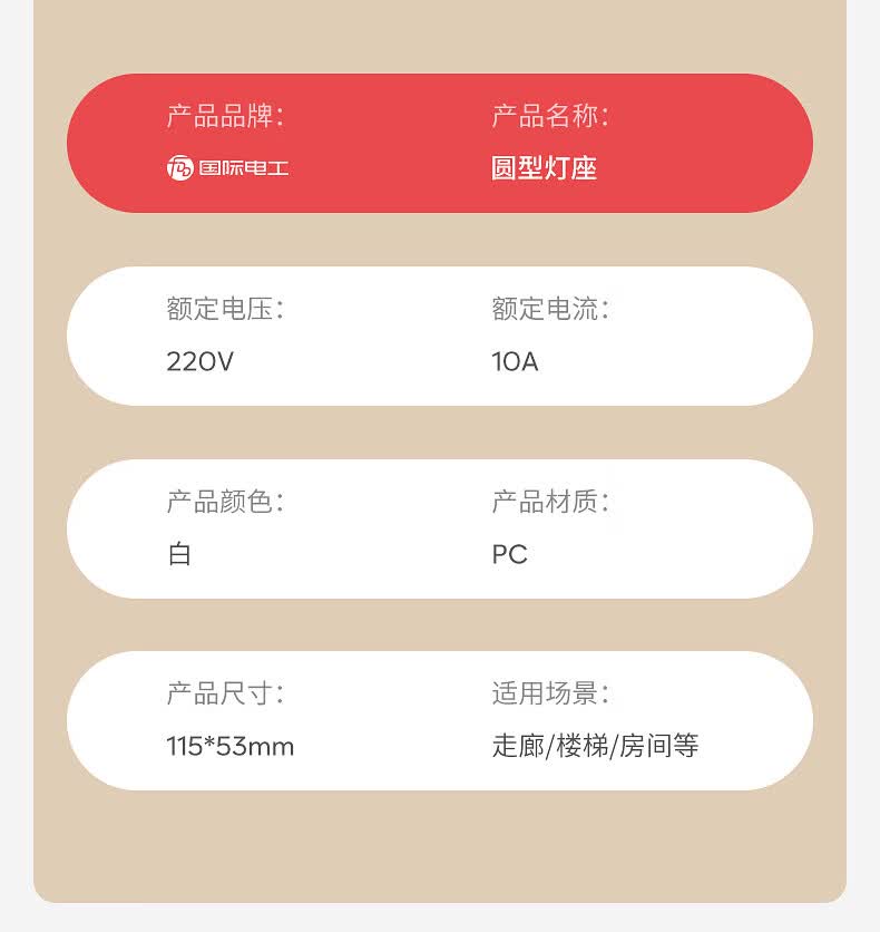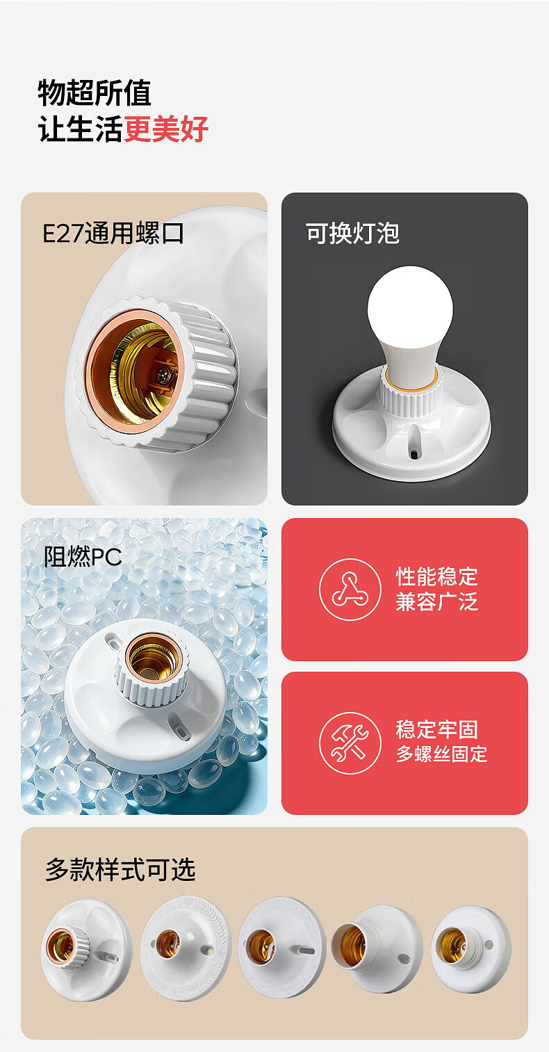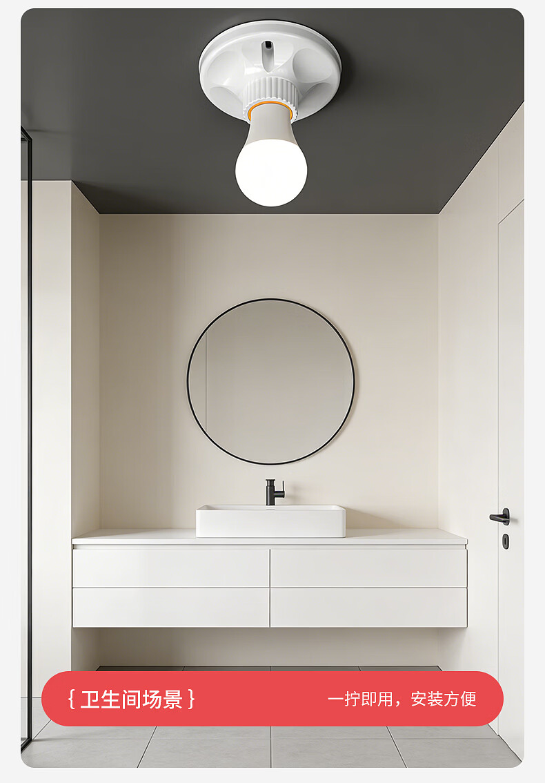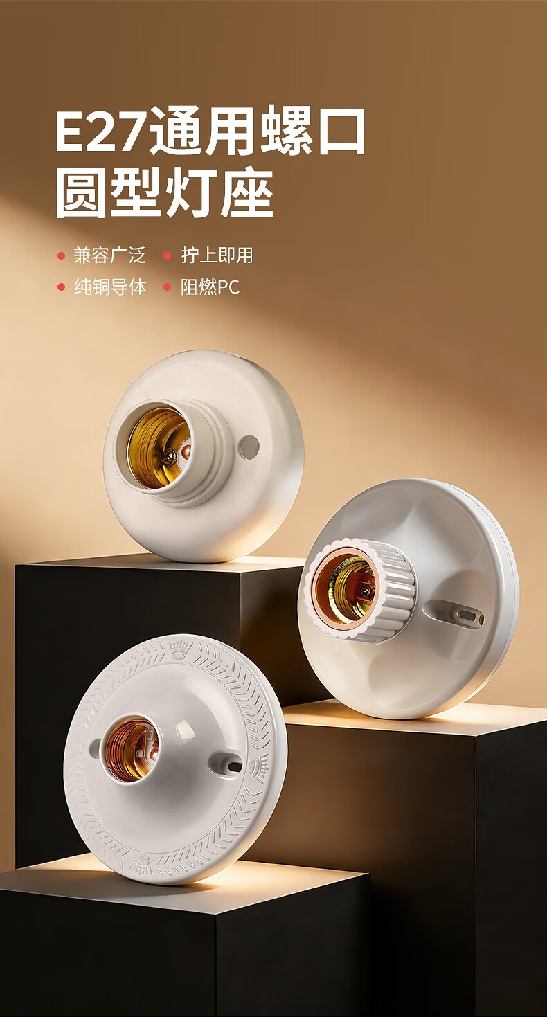 国际电工E27螺口通用型灯头灯座家用明装可控LED节能灯泡明线平口底座 彩心中厚(胶木内胆) 1只装