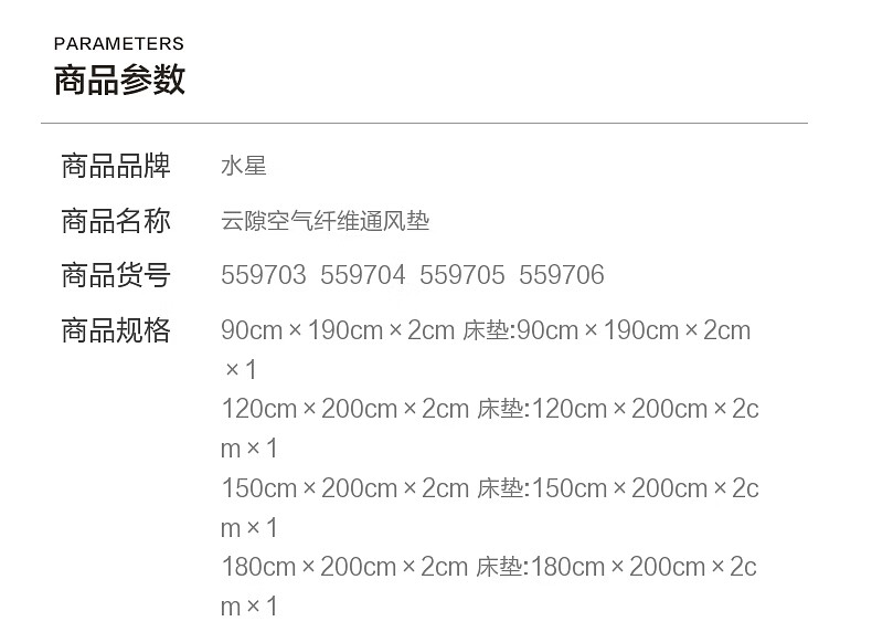 水星家纺云隙空气纤维通风垫 云隙空气纤维通风垫 90cm×190cm×2cm