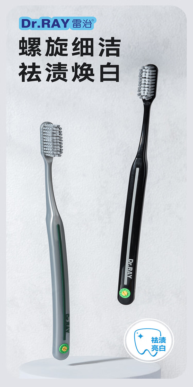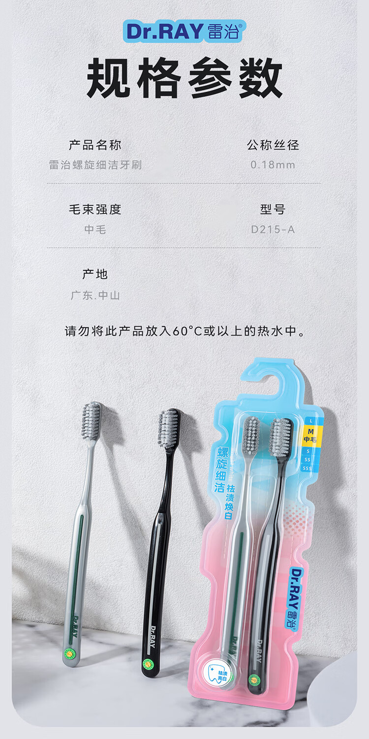 雷治雷治牙刷男士专用高档中硬毛牙刷耐用高密双螺旋平毛去烟渍牙渍 D215A男士牙刷1盒 2支