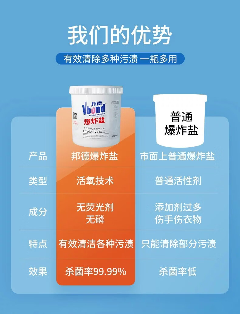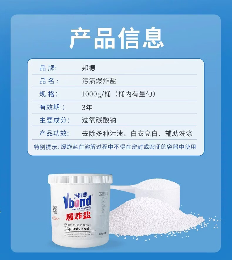 VBOND爆炸盐二代彩漂剂白衣服祛霉祛黄漂白剂99%邦德系列杀菌洗衣粉 1000g