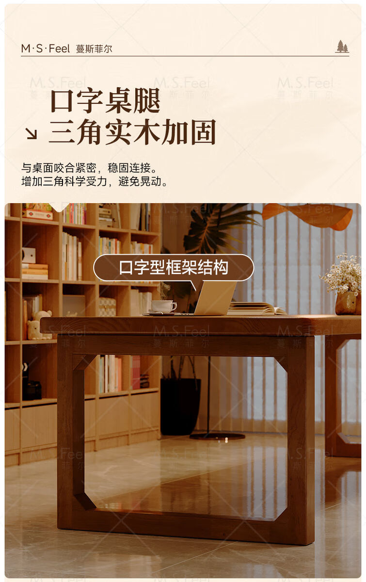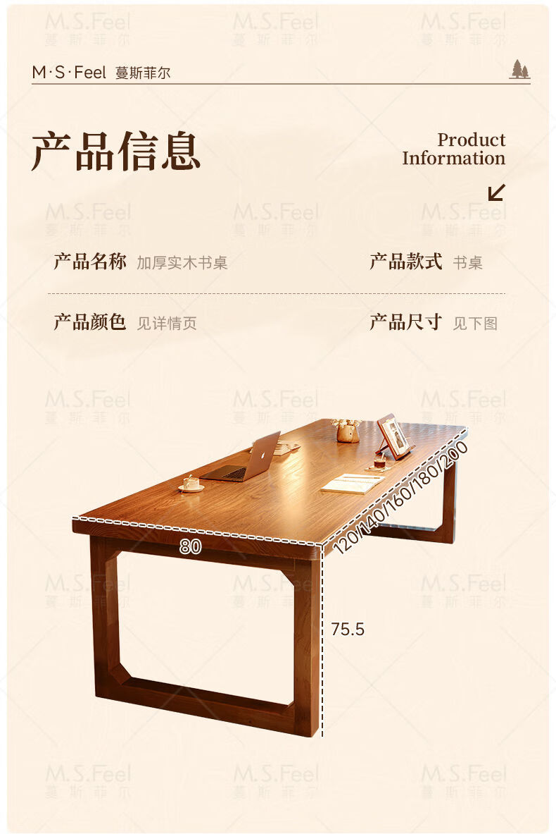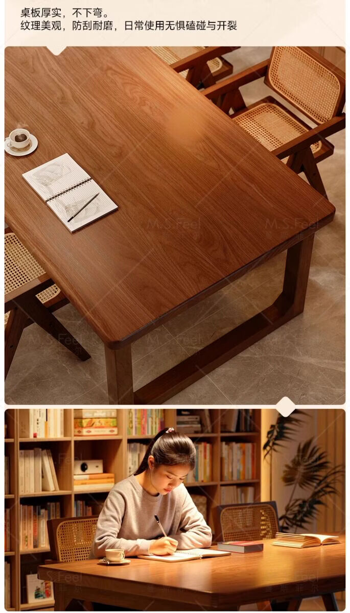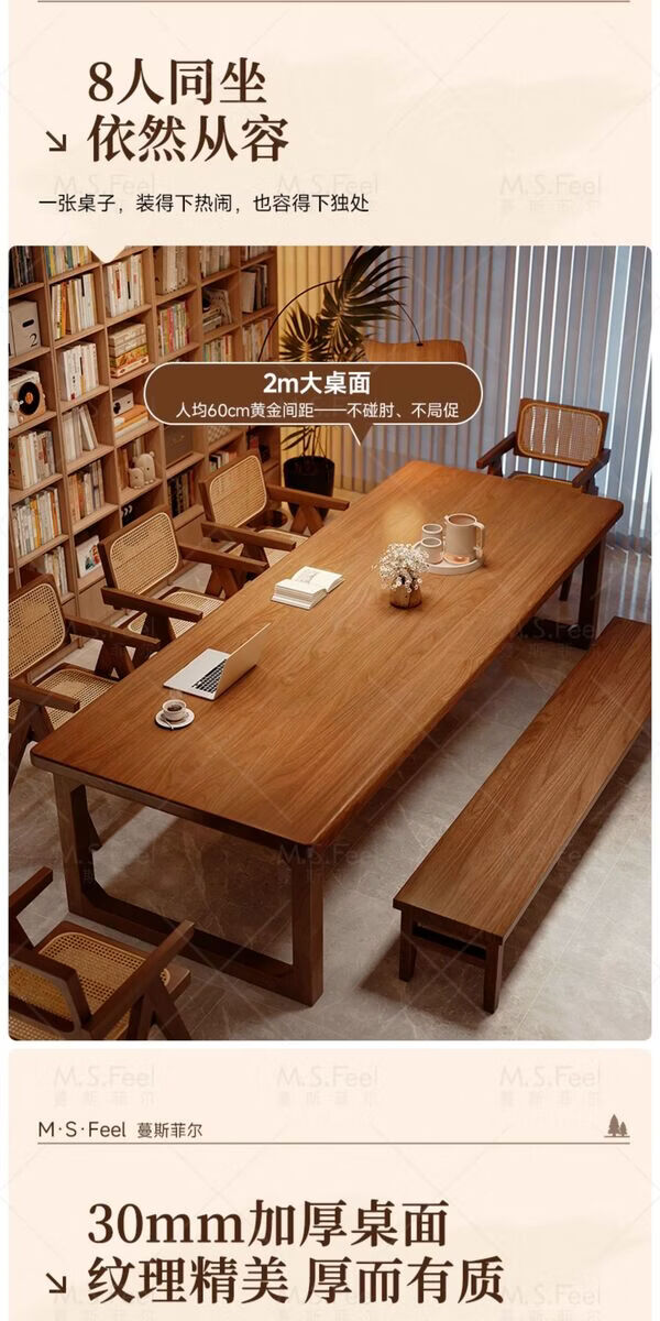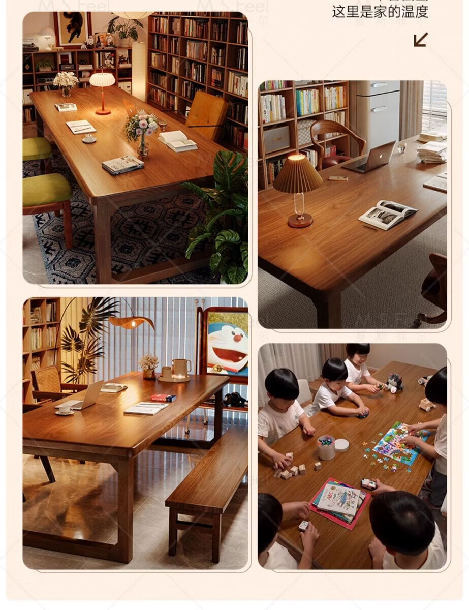 溥畔全实木客厅大长书桌阅读学习桌家用双人办公桌去客厅化桌子工作台 [FAS级橡胶木]胡桃色 +加厚版5cm