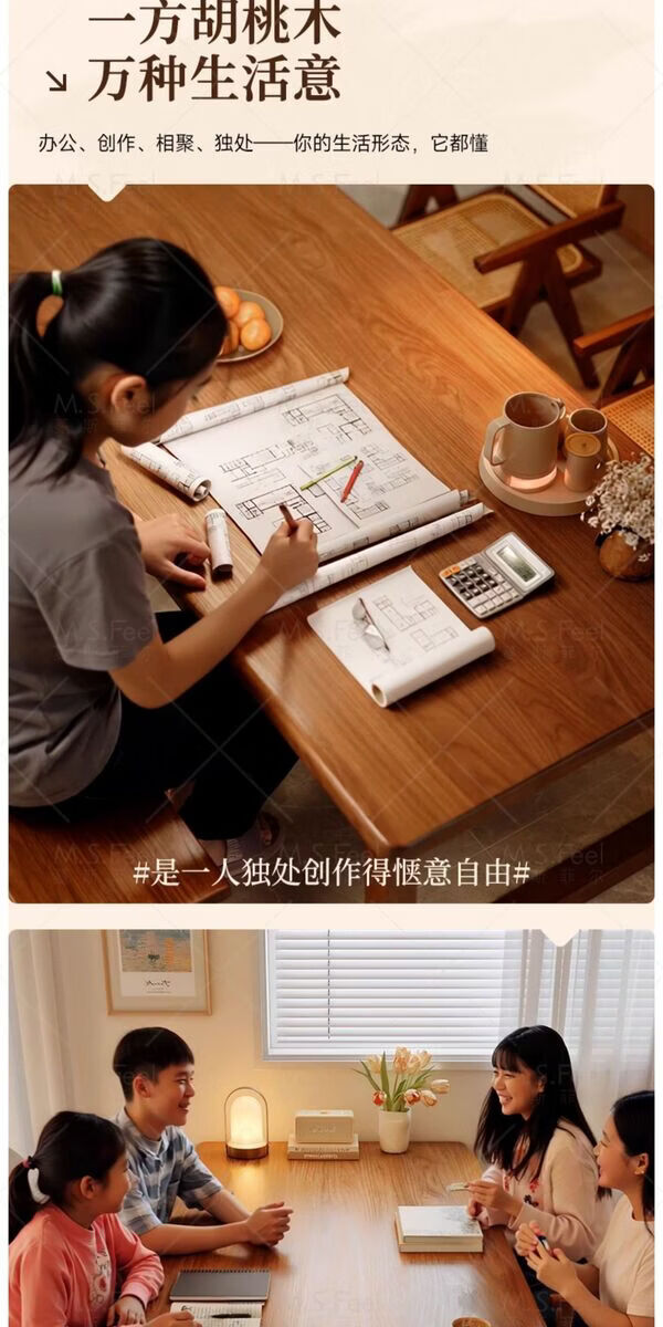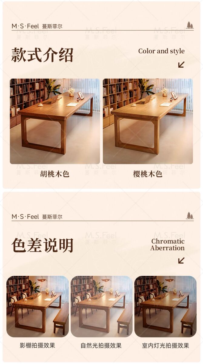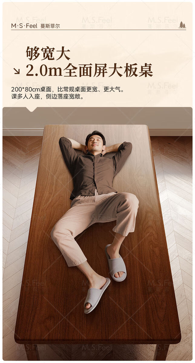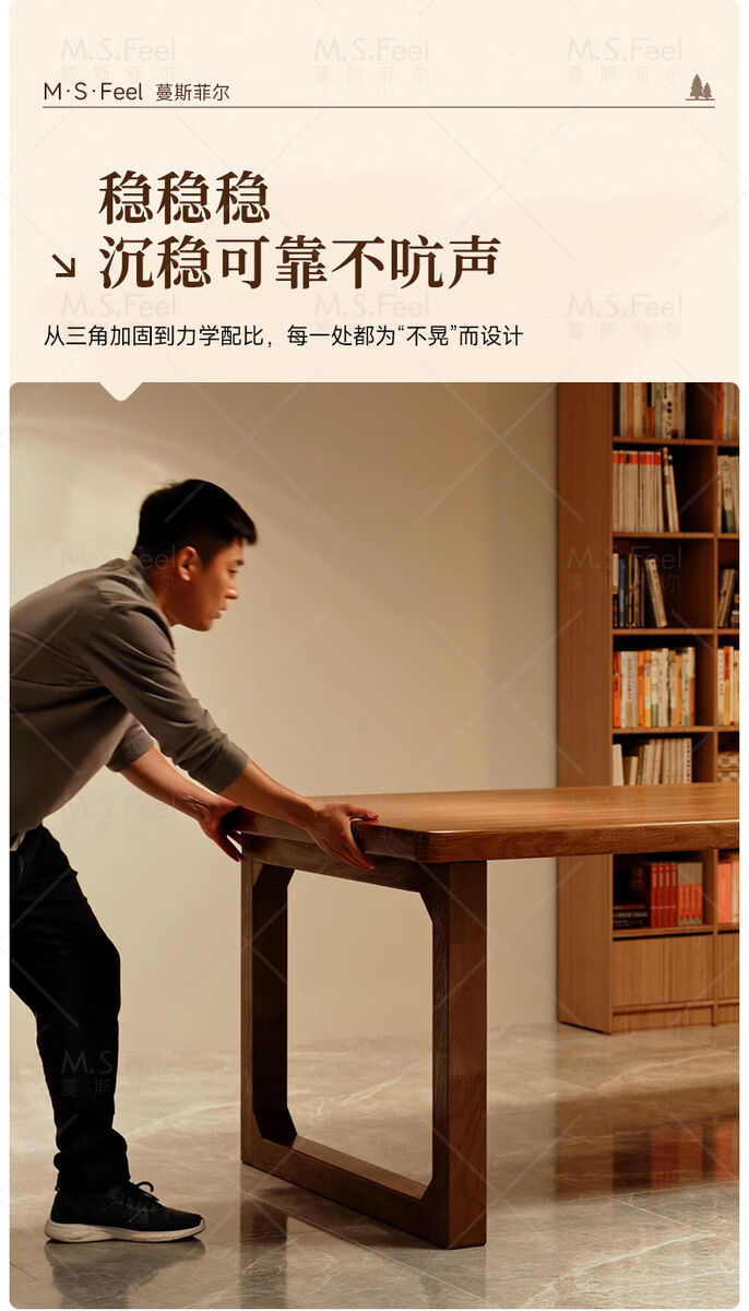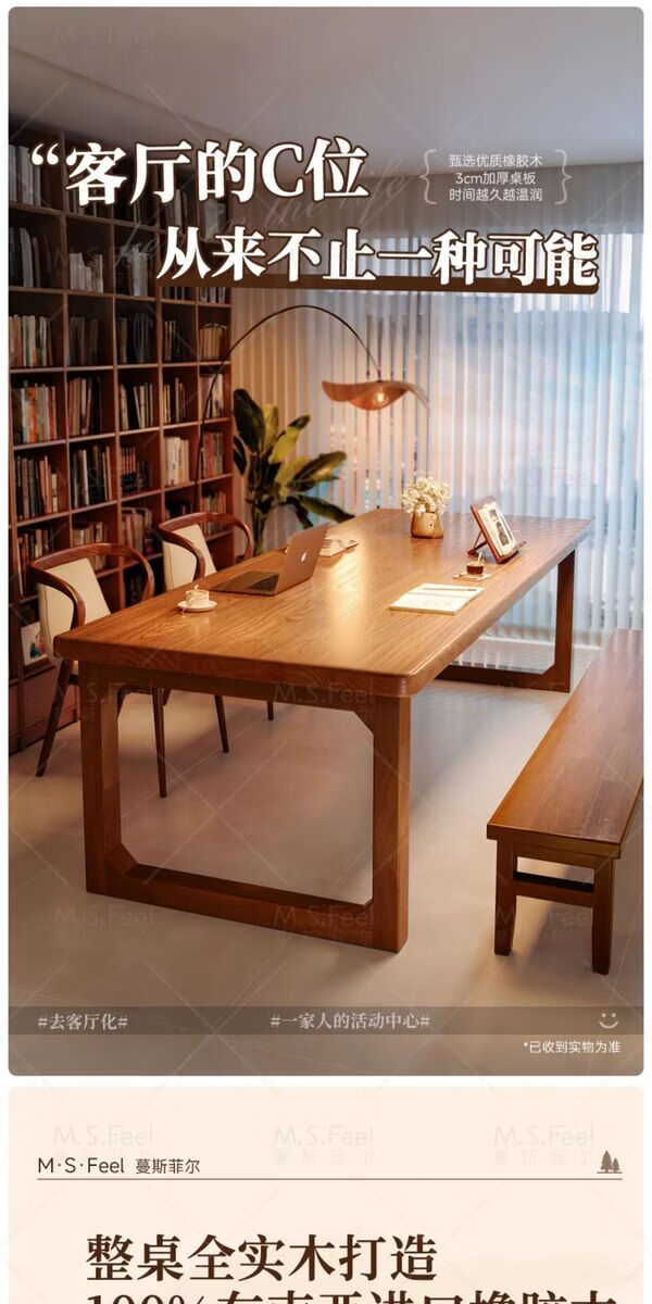 溥畔全实木客厅大长书桌阅读学习桌家用双人办公桌去客厅化桌子工作台 [FAS级橡胶木]胡桃色 +加厚版5cm