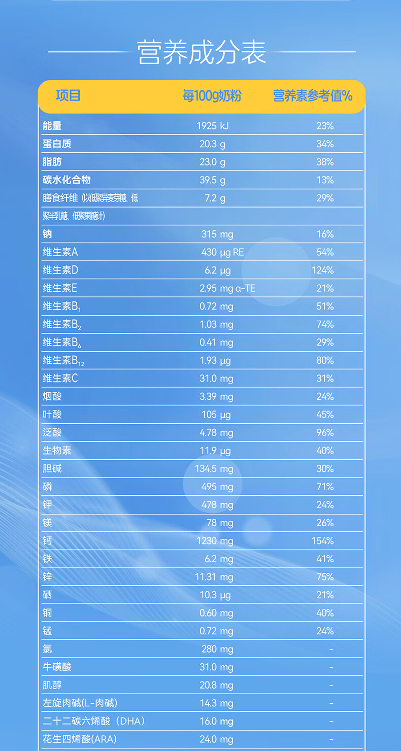 飞鹤聚聪名高钙DHA脑动力学生专研配方奶粉4段(3-14岁)400g*1盒
