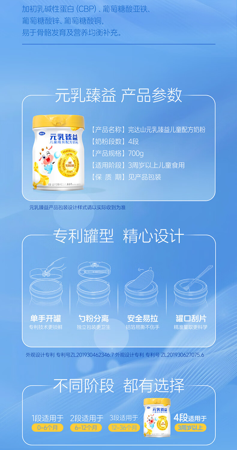 完达山元乳臻益儿童奶粉4段700g(36个月以上)含水解蛋白+乳铁蛋白