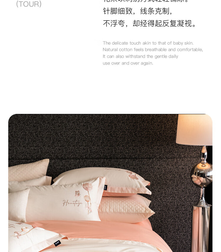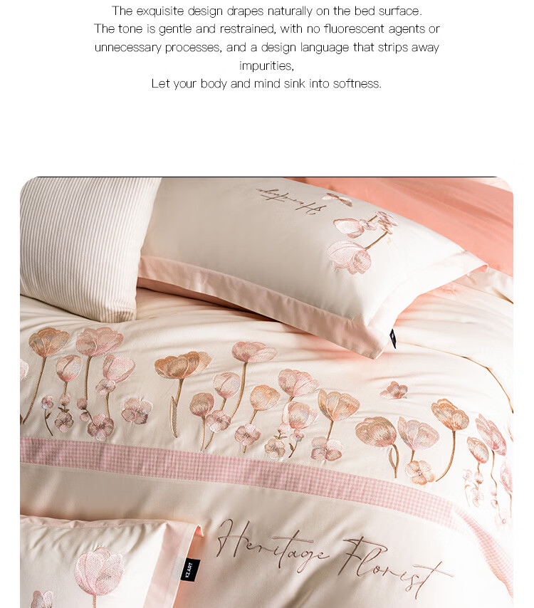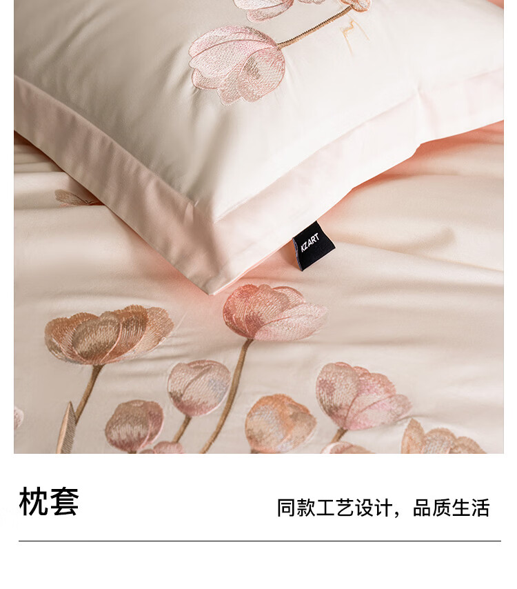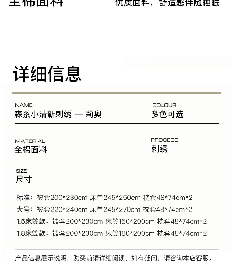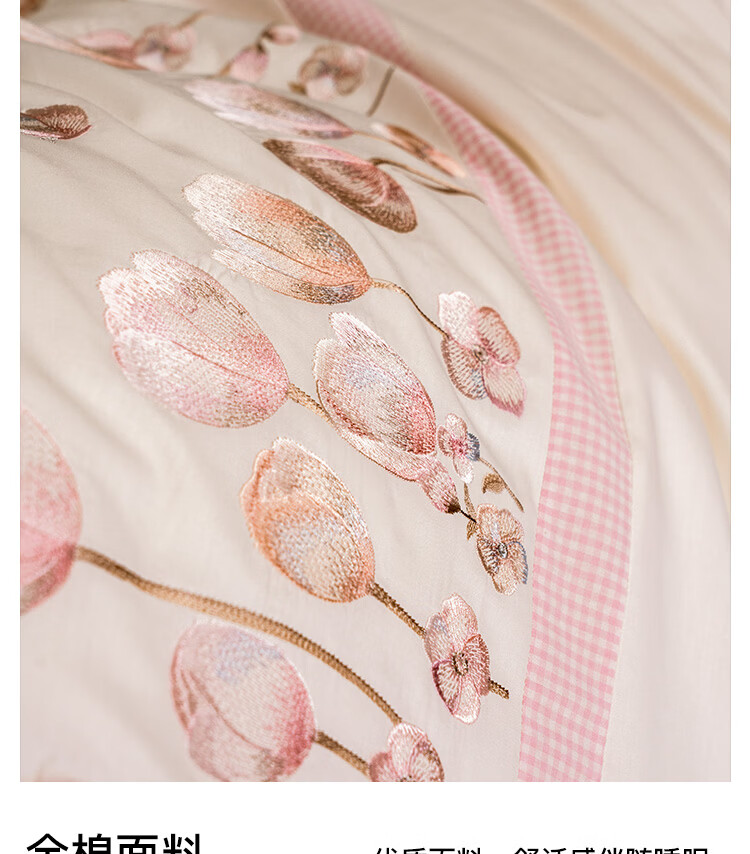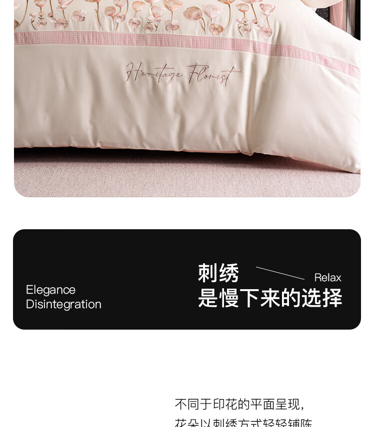 ROLAND LIVE高级感全棉四件套小清新绣花家用1.8m床被套床单纯棉床上用品床笠 KZ 全棉四件套-莉奥奶白 1.5米床 床单款 【被套200*230cm】