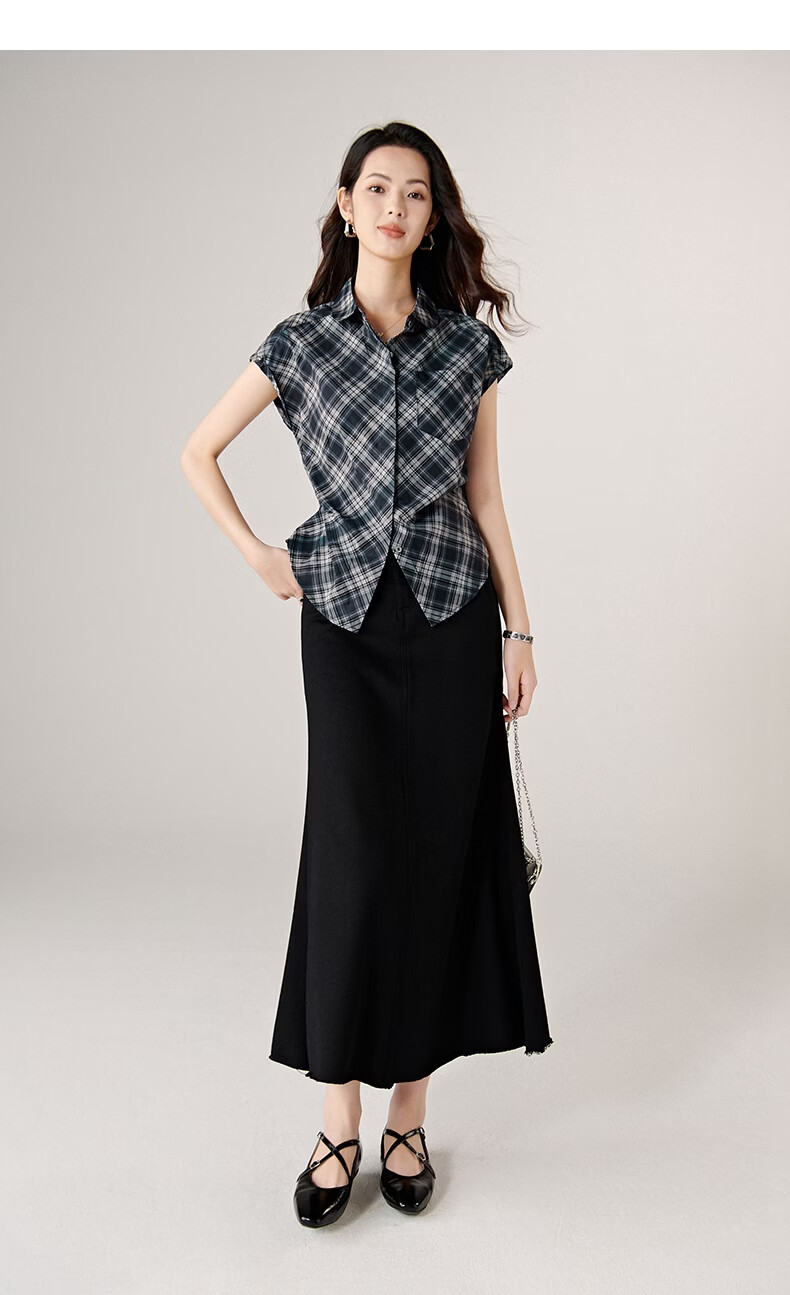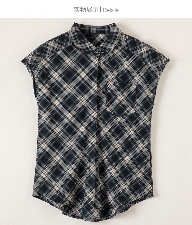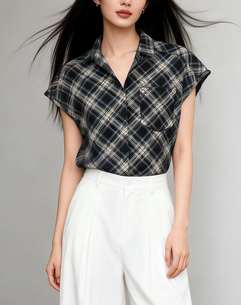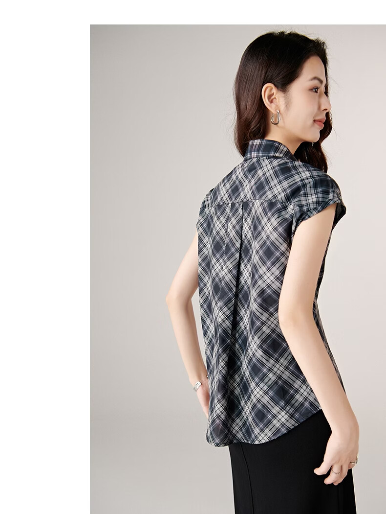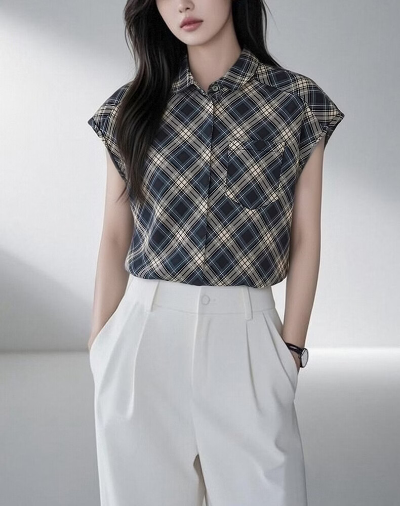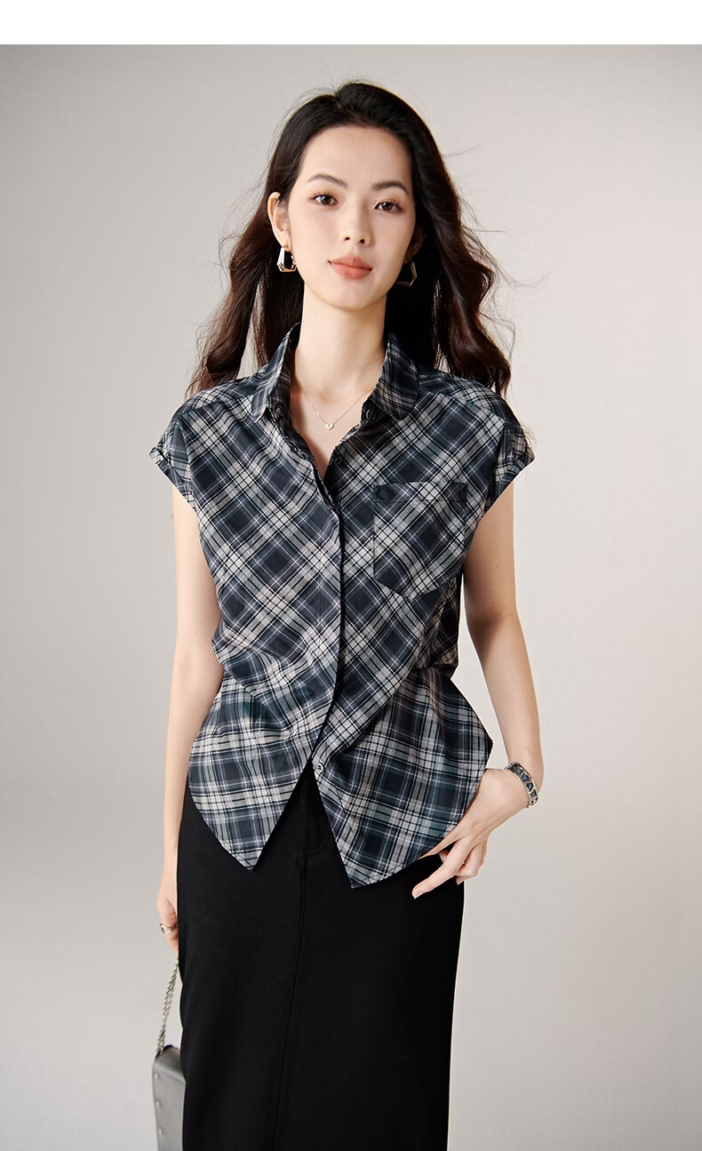晚白【新品】2026年春款时尚复古格纹上衣挺括利落干练通勤无袖衬衫女 格子 S