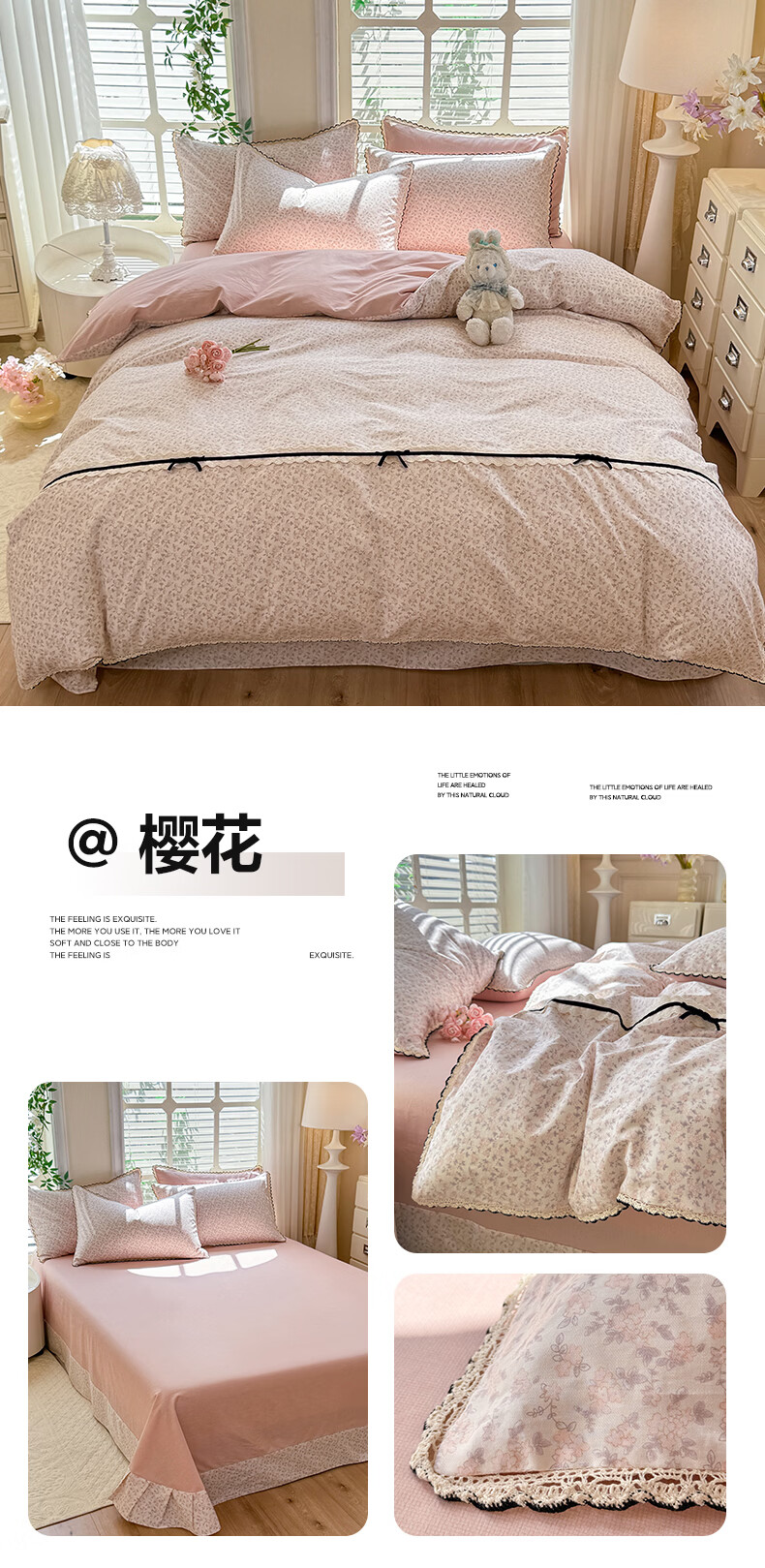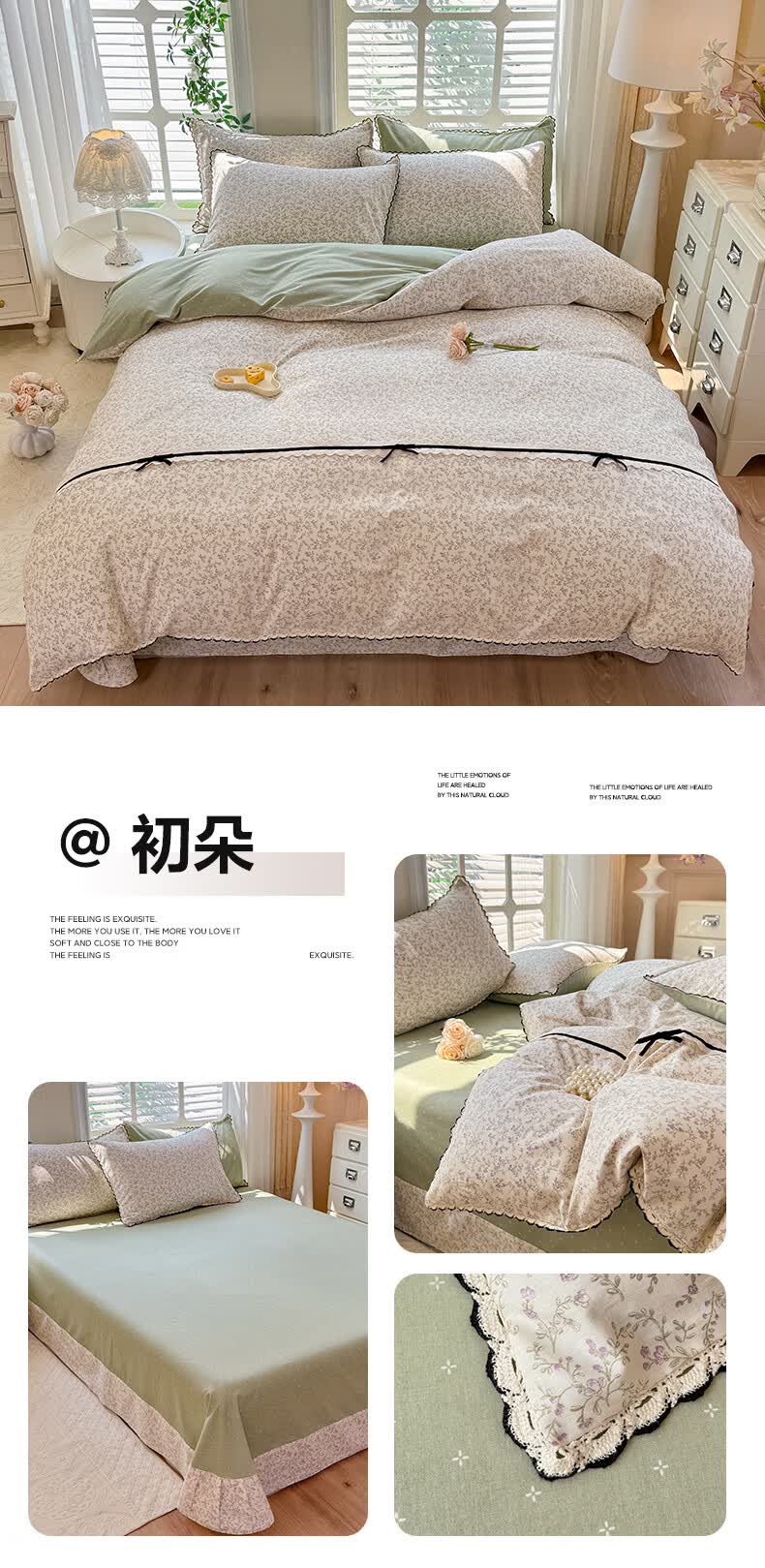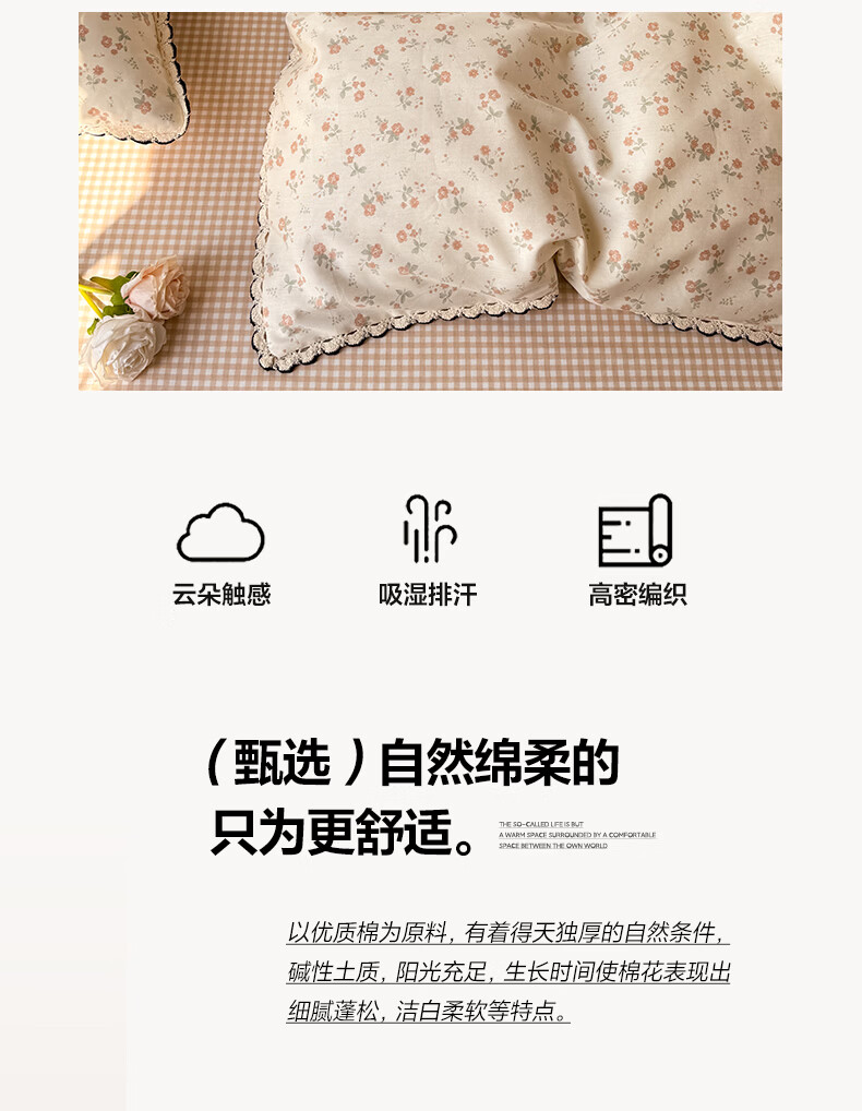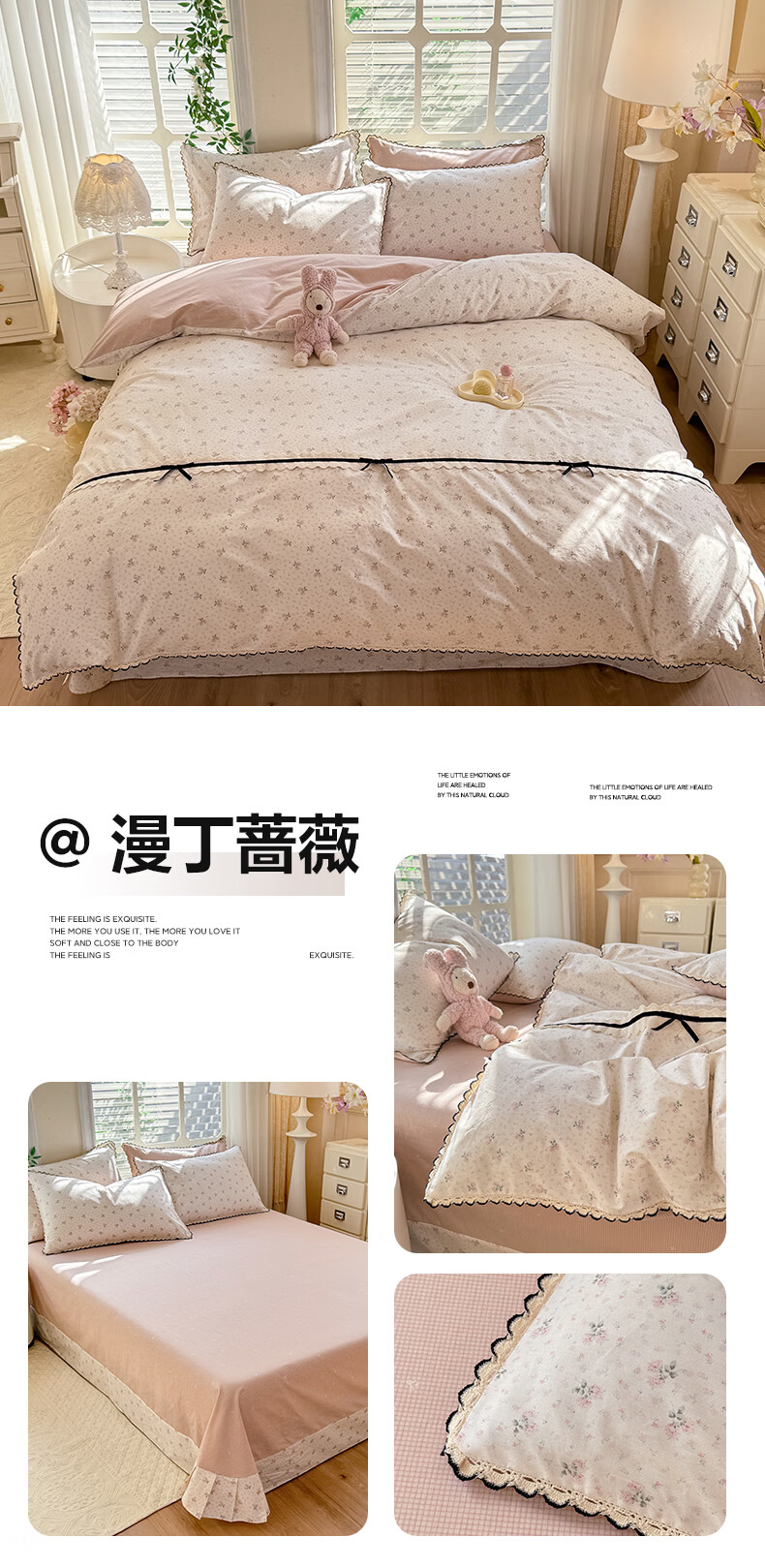 无印良品小清新全棉床上四件套纯棉韩系小碎花被套罩宿舍家用裸睡床单床笠 悠然雅居-粉【触感细腻 柔软亲肤】 1.2m 床单款 四件套 被套150*200cm