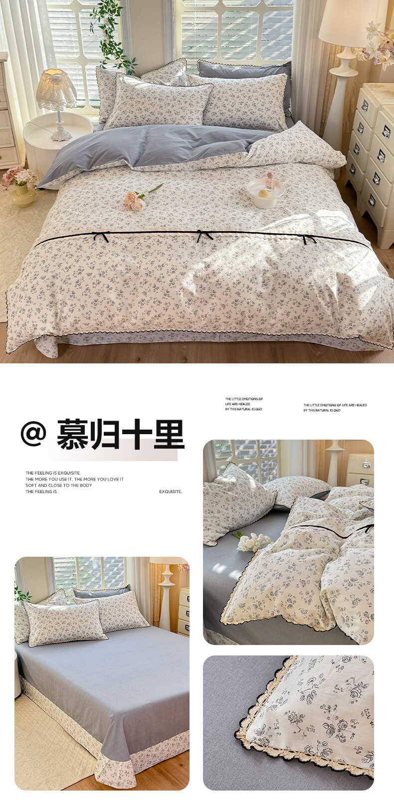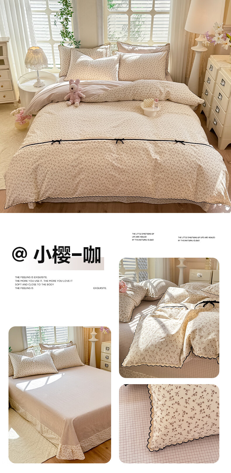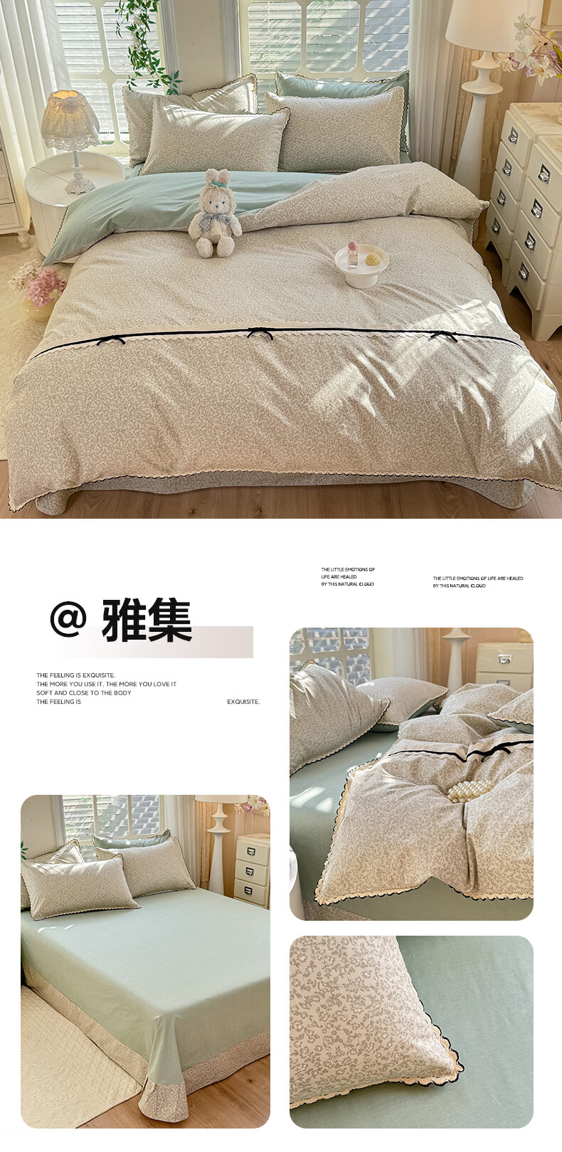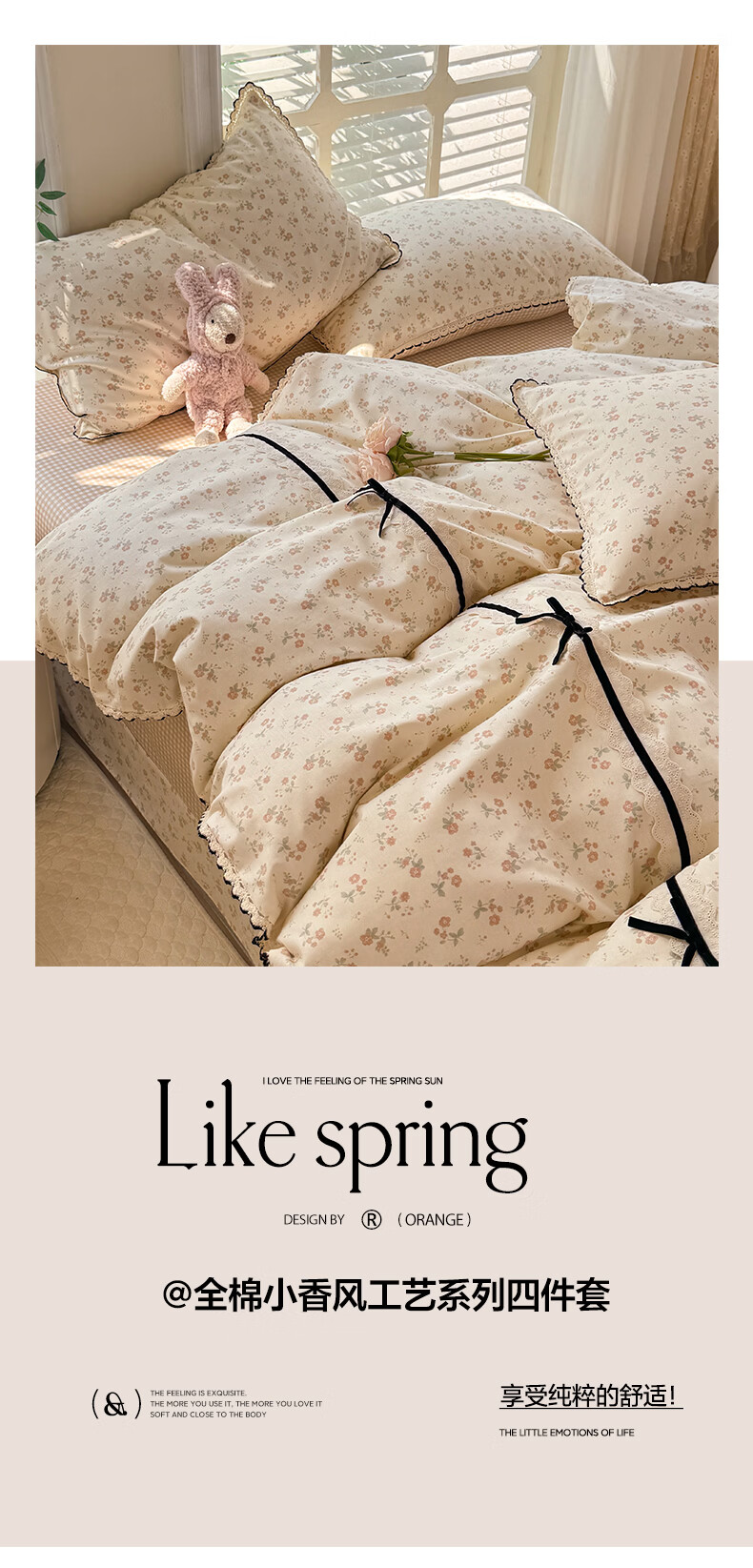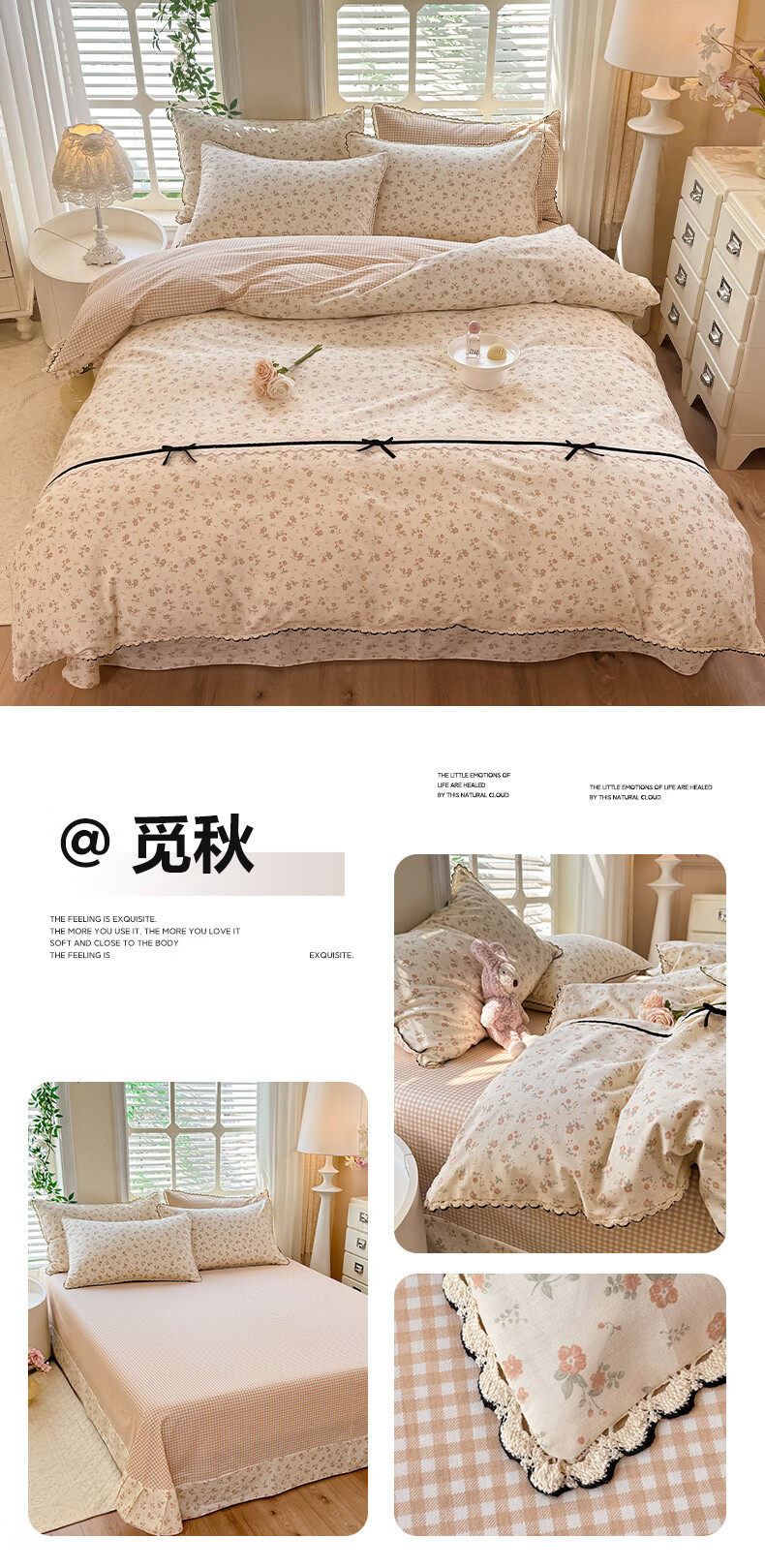 无印良品小清新全棉床上四件套纯棉韩系小碎花被套罩宿舍家用裸睡床单床笠 悠然雅居-粉【触感细腻 柔软亲肤】 1.2m 床单款 四件套 被套150*200cm