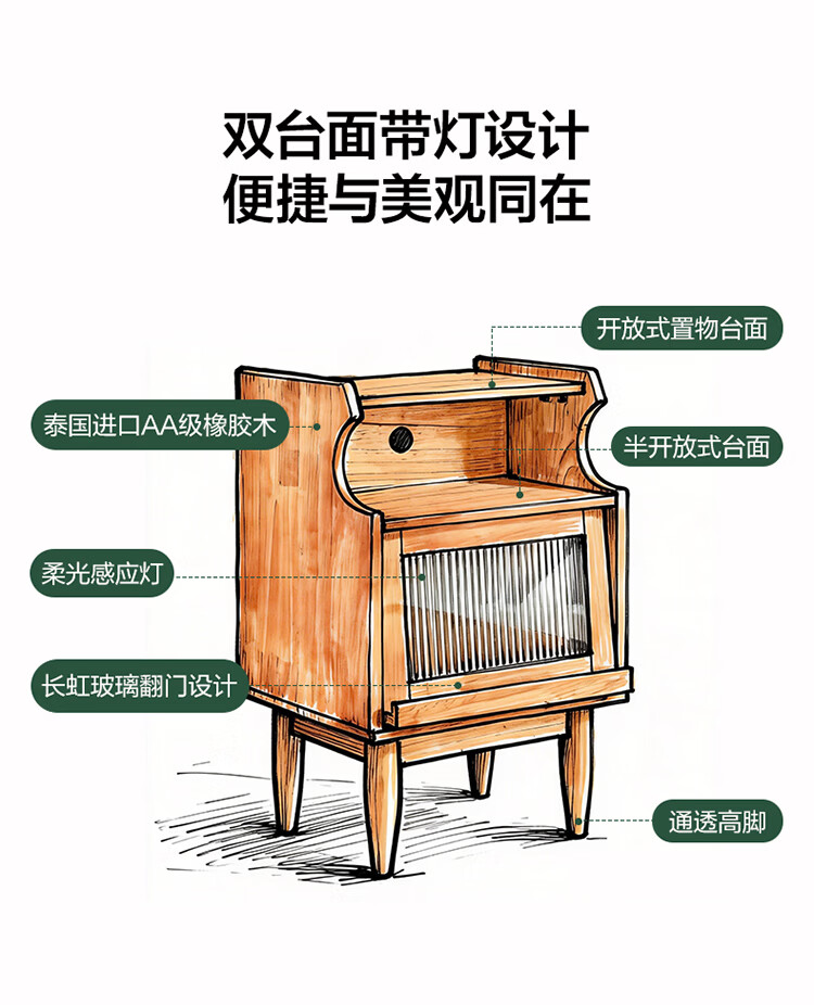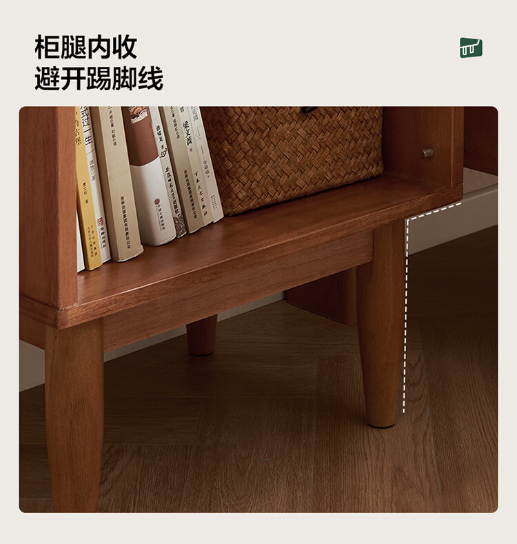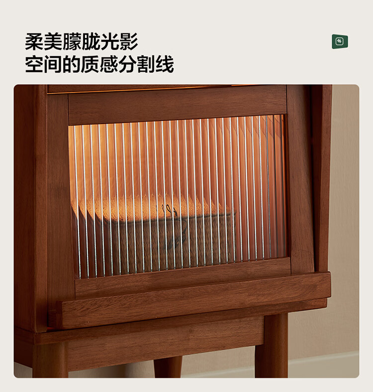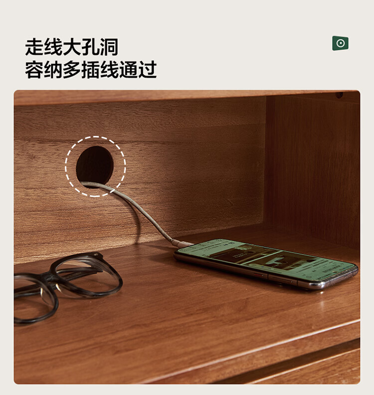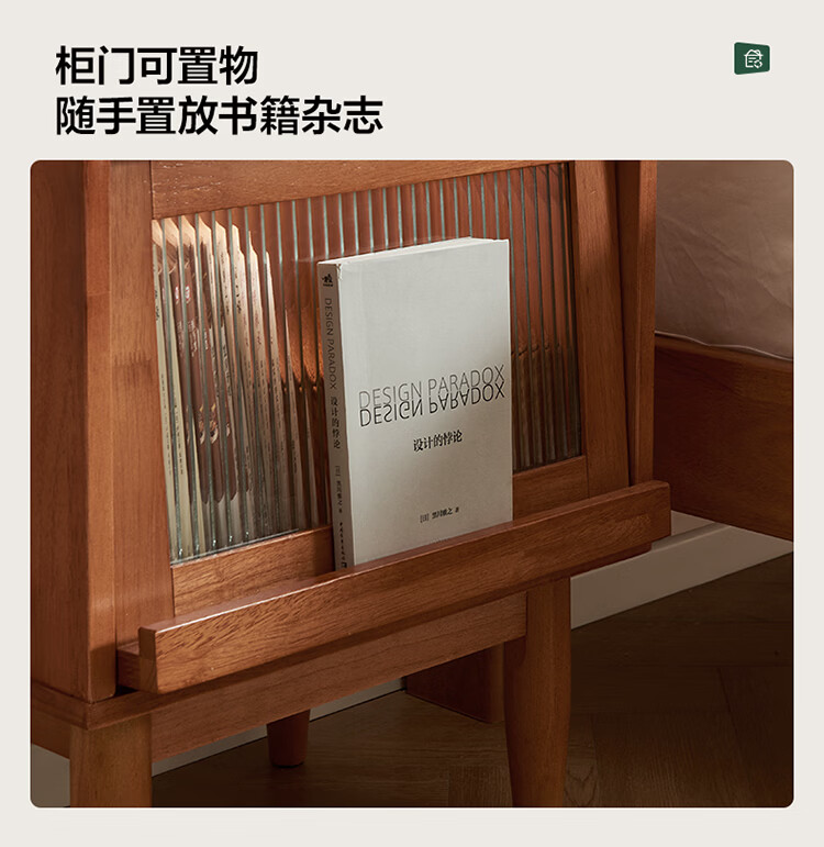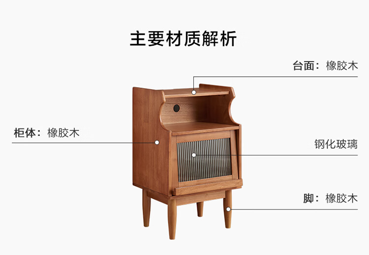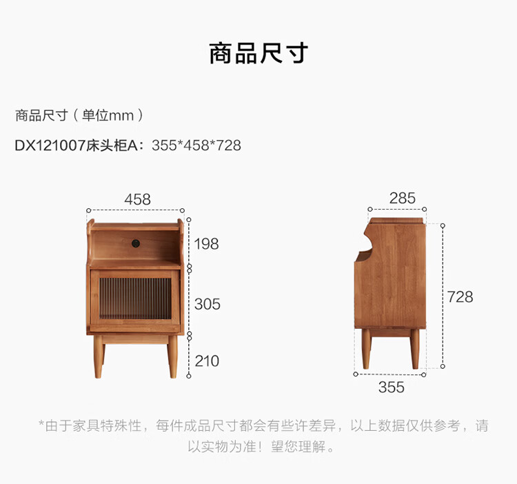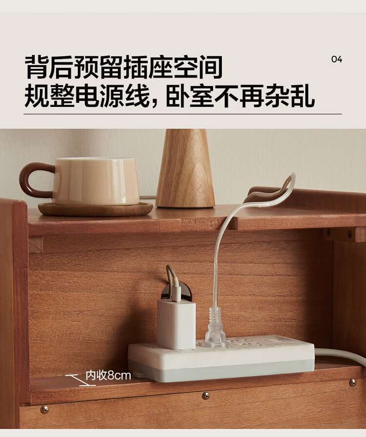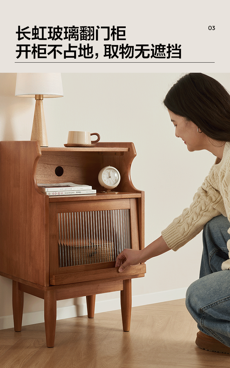 全友家居原木风卧室实木床头柜置物架新款小型收纳储物柜靠墙置物柜KS 【樱桃木色 | 橡胶木】带灯床头柜