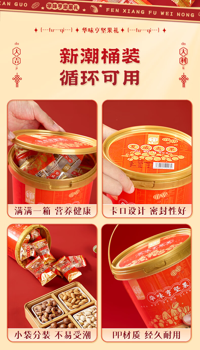 华味亨500g夏威夷果桶装 约15小包独立包装送礼坚果大颗粒年货休闲零食 500g桶装夏威夷果
