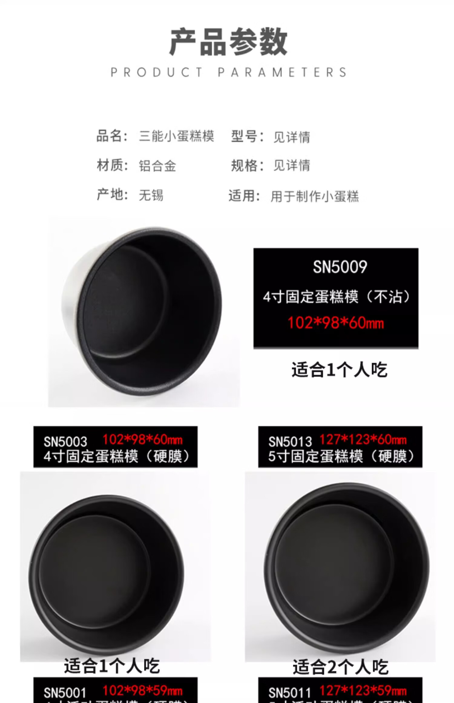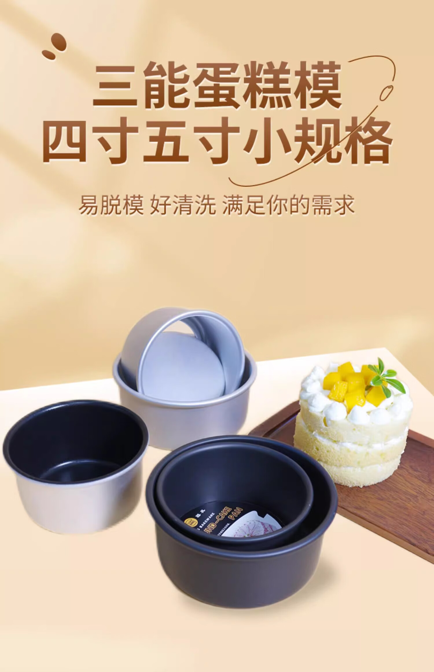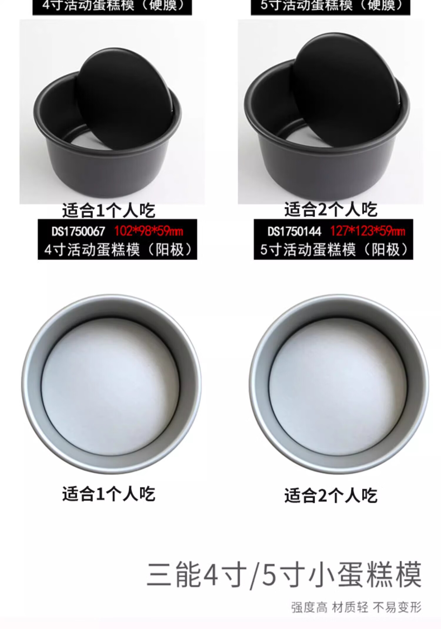 三能(SANNENG)蛋糕模具戚风阳极活底4寸圆形家用烘焙模具套装DS1750067