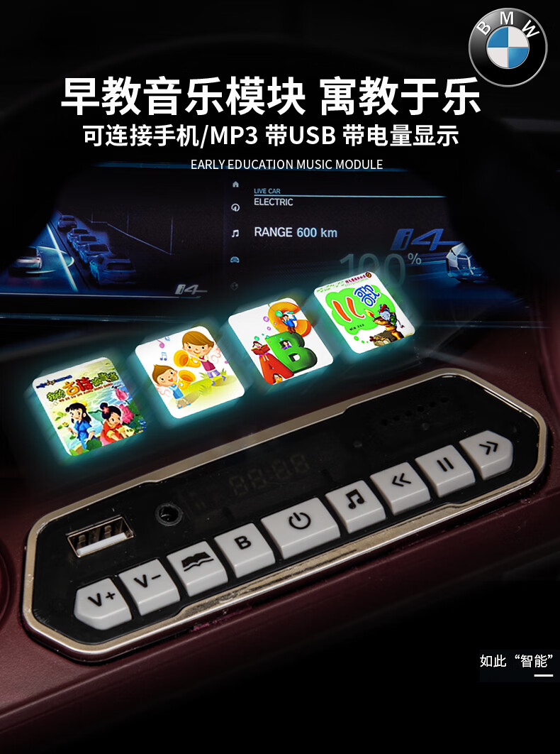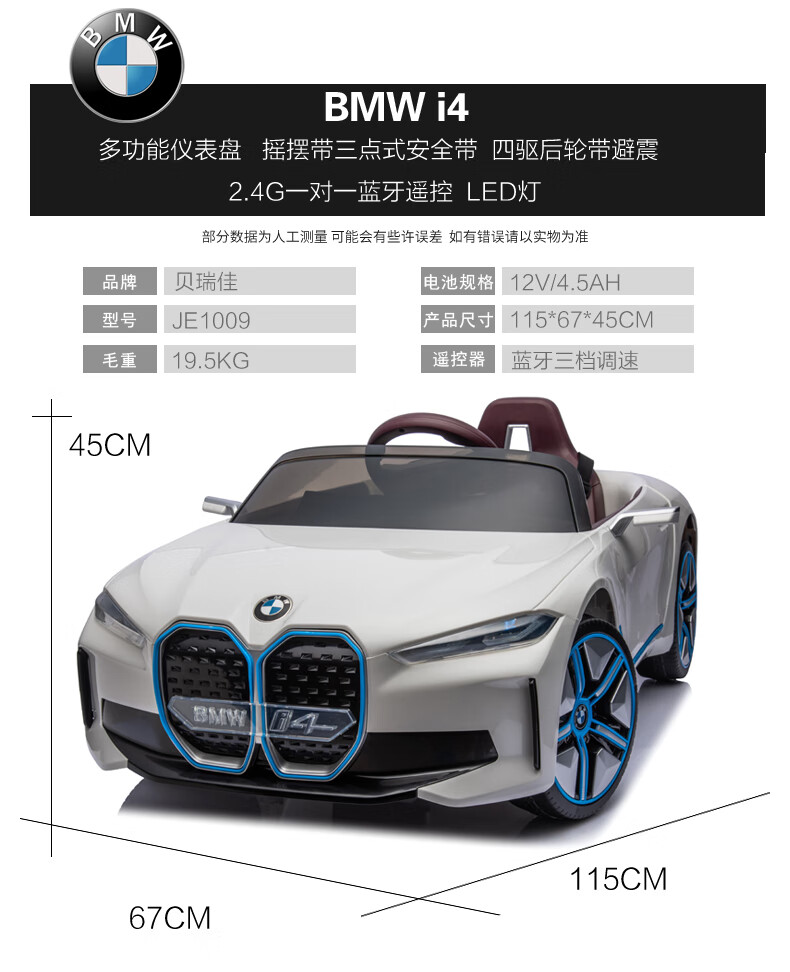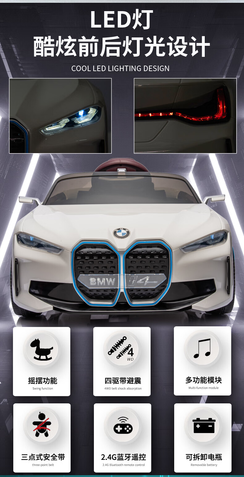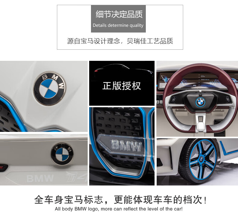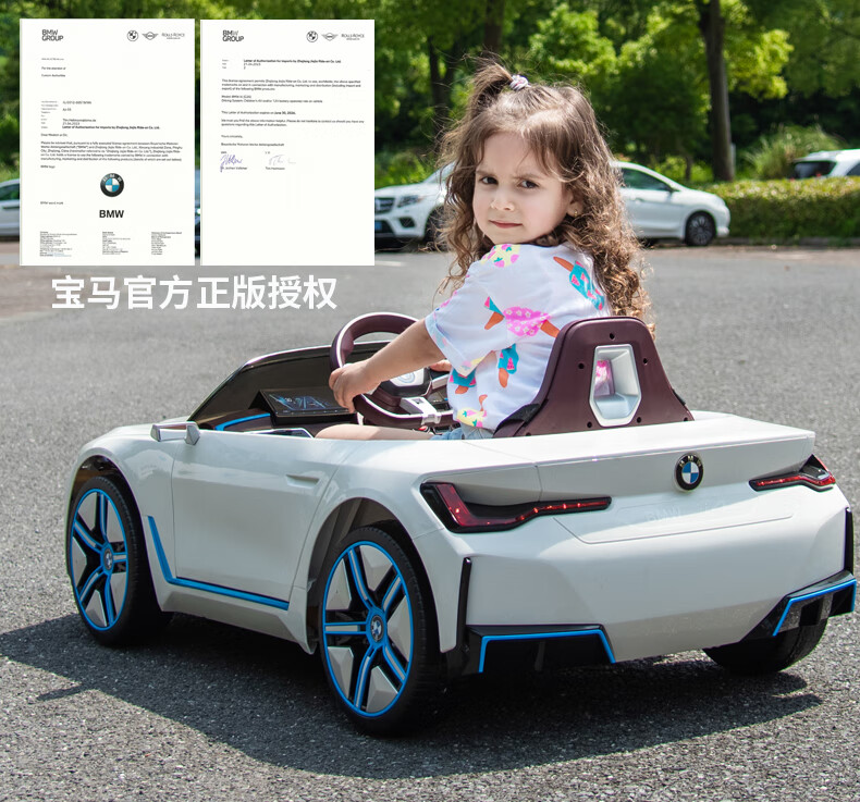 贝瑞佳(BeRica)宝马授权婴儿童电动车遥控四轮汽车宝宝小孩玩具可坐人男女礼物白