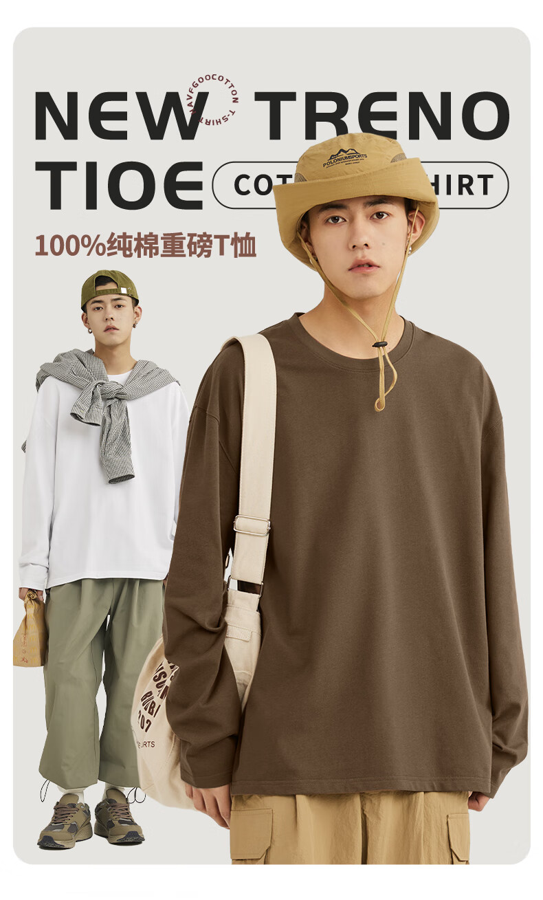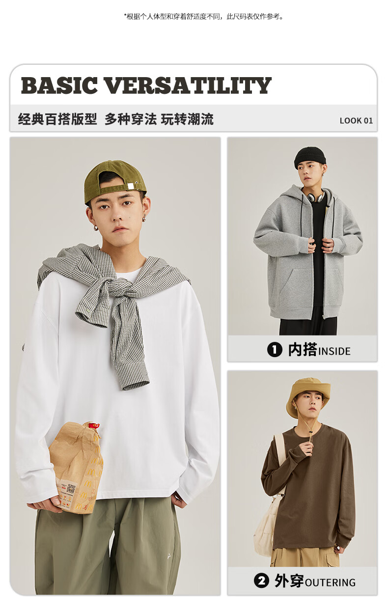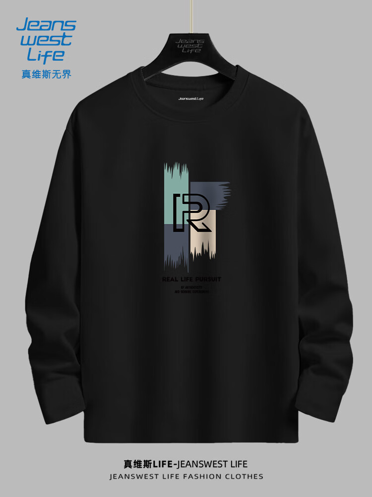 JEANSWEST LIFE真维斯纯棉长袖t恤男重磅亲肤圆领内搭潮牌外穿衣服青少年打底衫A