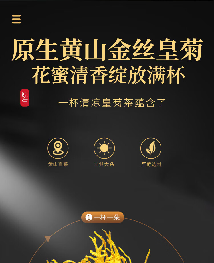 刀蔓菊花茶金丝皇菊黄山菊花茶泡茶黄山菊花胎菊桐乡泡水喝胎菊茶花茶 金丝皇菊 50g*1瓶 【大瓶】