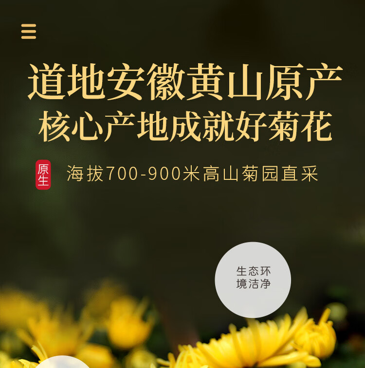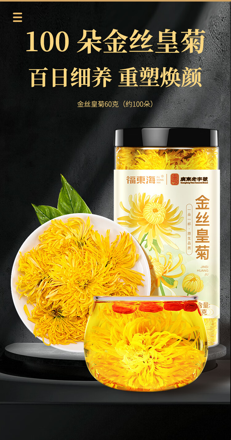 福东海 菊花茶【约100朵完整大花】金丝皇菊胎菊黄山贡菊特茶级花草茶