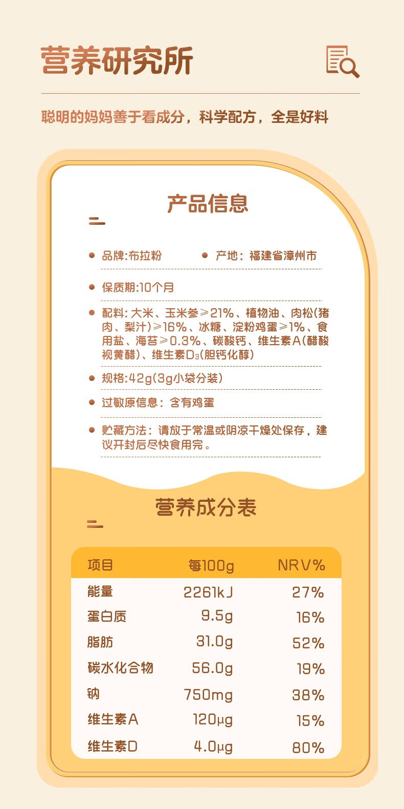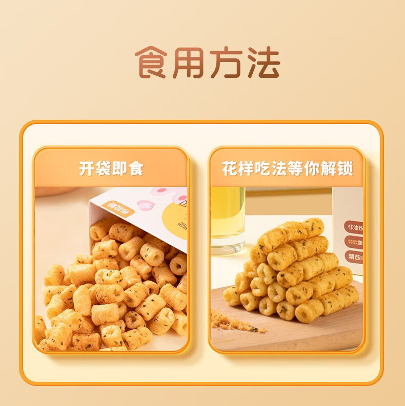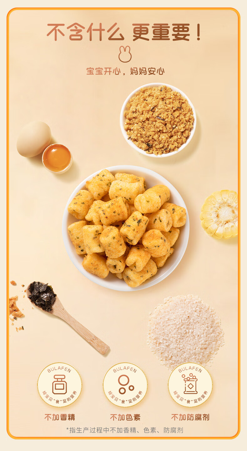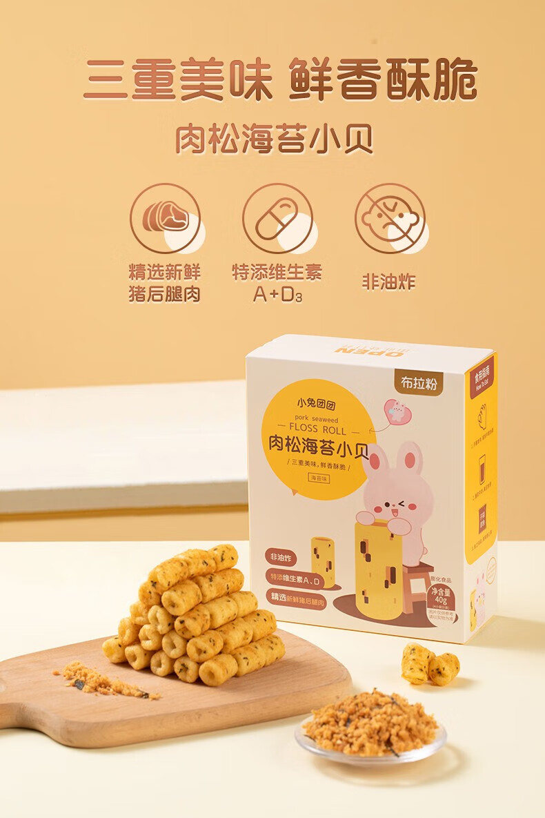 布拉粉小兔团团后猪腿肉松海苔小贝宝宝泡芙非油炸儿童营养零食42g/盒 【A+D同补】1盒丨海苔味