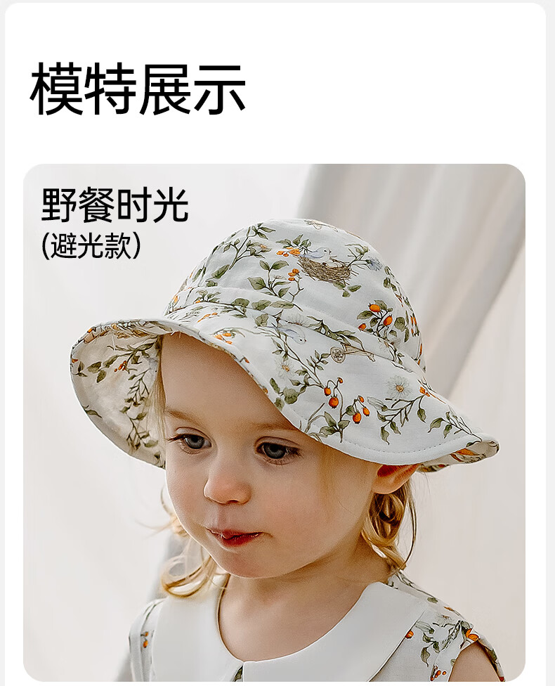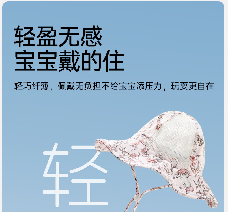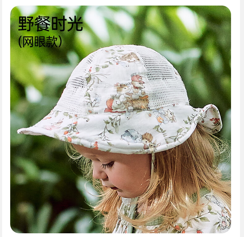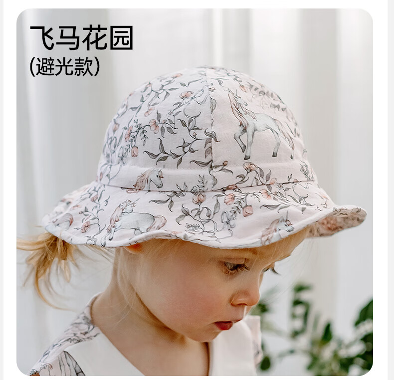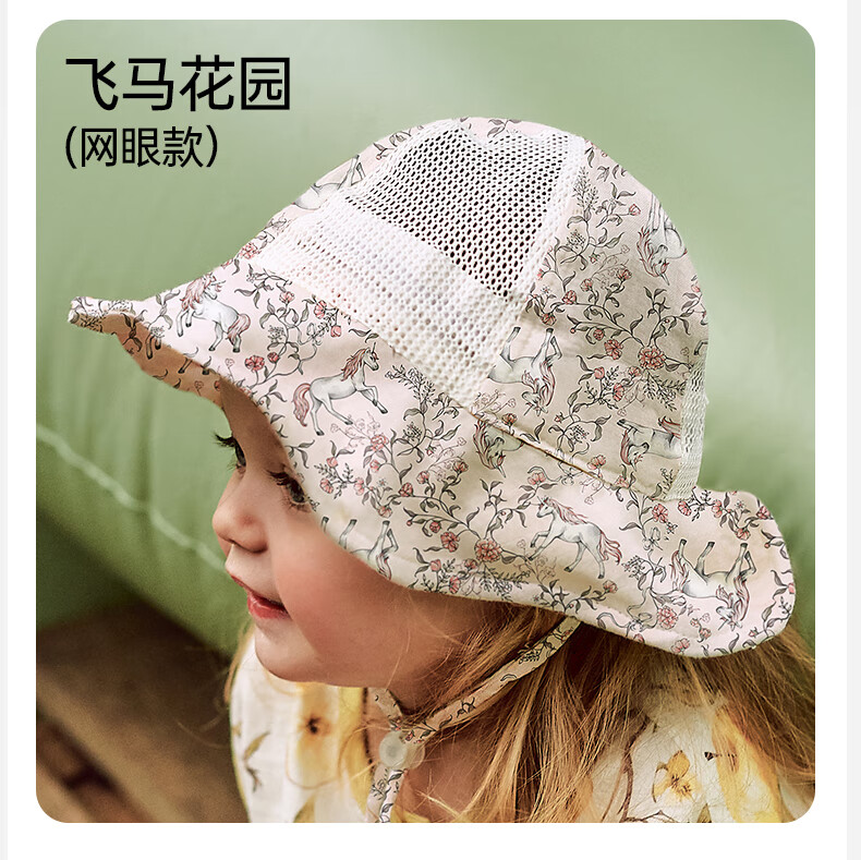 欧孕(OUYUN)儿童防晒帽婴儿帽子夏季薄款宝宝大檐渔夫帽户外遮阳防太阳帽 飞马花园 【吸湿排汗 透气网眼】 1-6岁 均码(52CM-58CM)