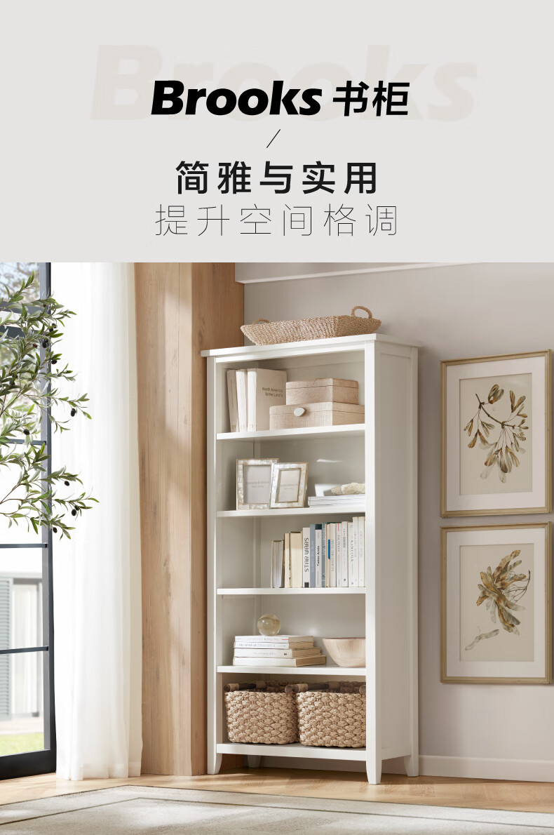 Harbor House【政府补贴】美式现代书柜大气简约书房展示柜书架收纳柜子置物柜 Brooks 书柜-白色