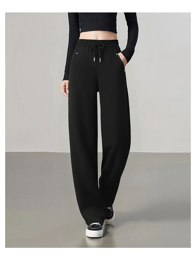 晚白【专享】2026年春新款时尚高腰裤子宽松舒适显瘦直筒休闲裤女 黑色 26