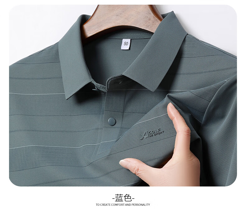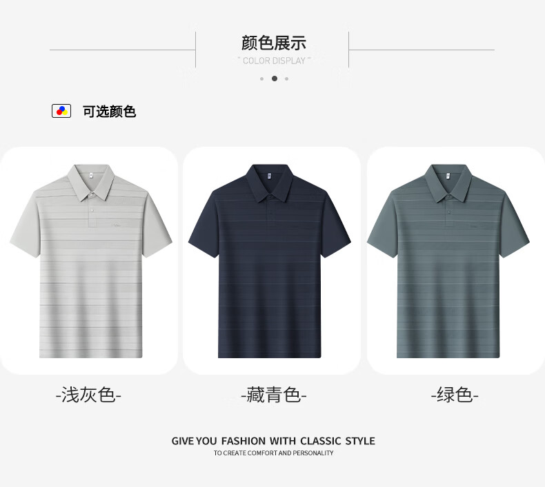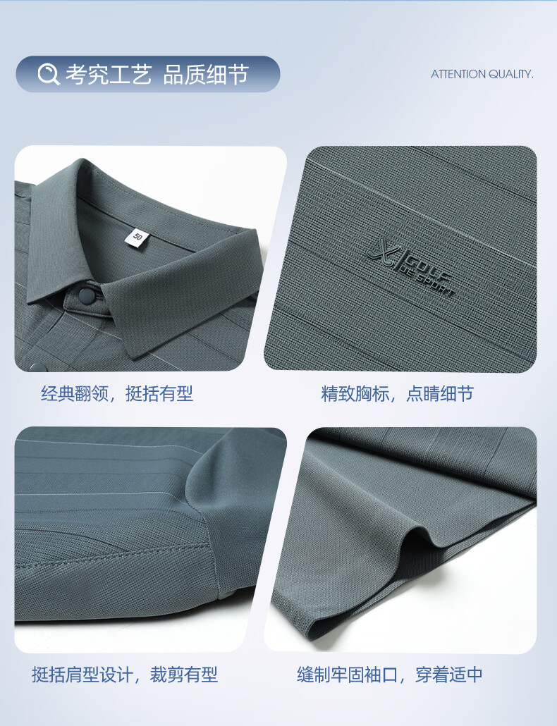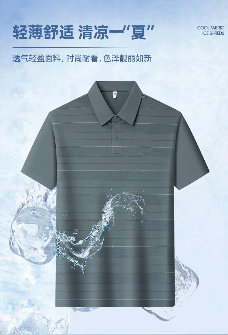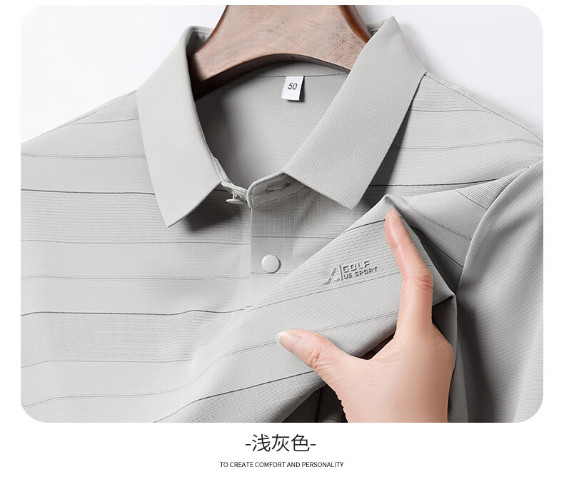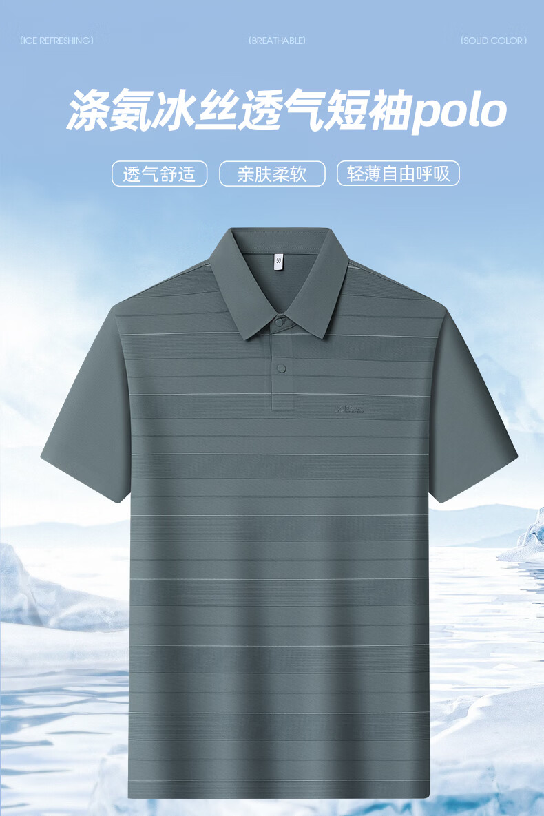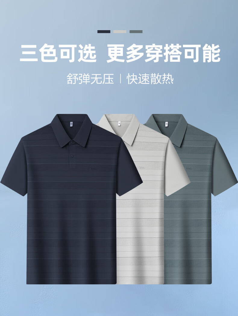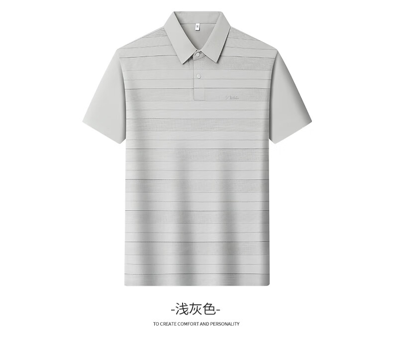 SHANSHAN杉杉【锦氨弹力条纹】短袖t恤男印花翻领POLO衫商务通勤夏季新款 浅灰色 M /170