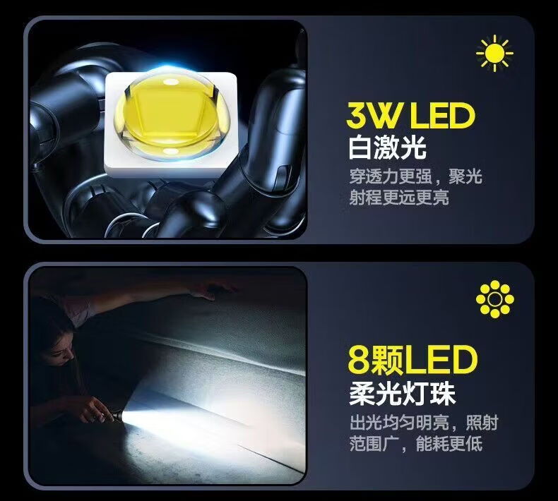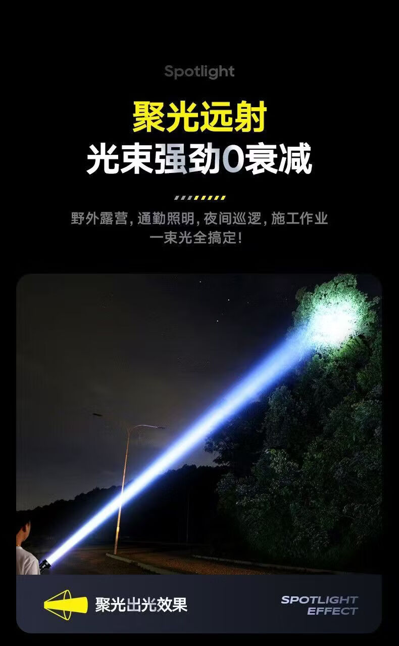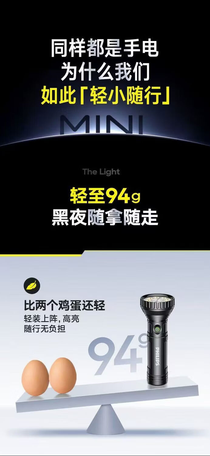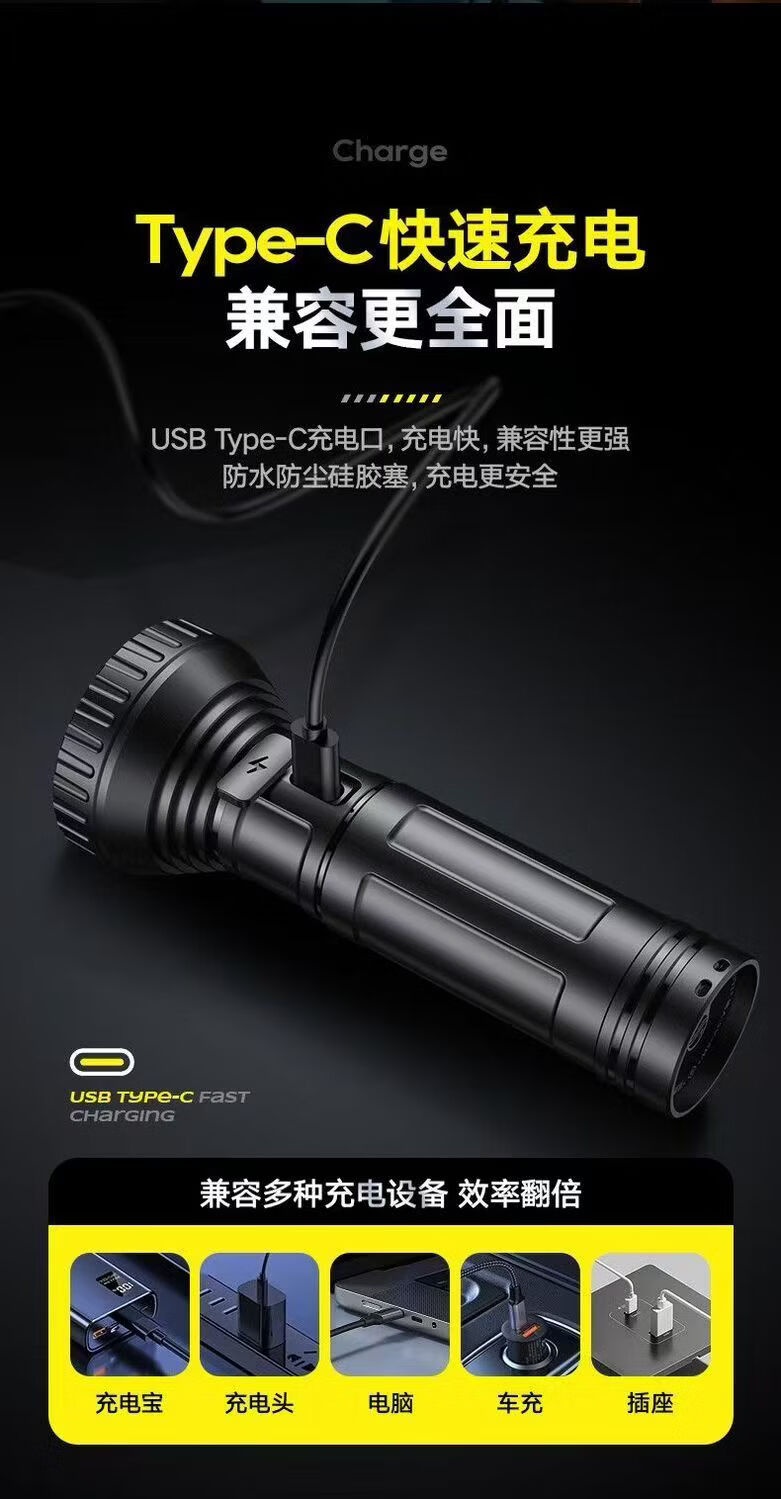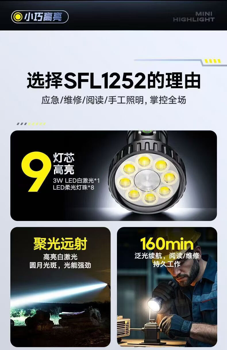 飞利浦(PHILIPS)手电强光高亮聚光远射九灯珠长续航充电户外应急灯SFL1252 3W/1200毫安/变焦/SFL1252