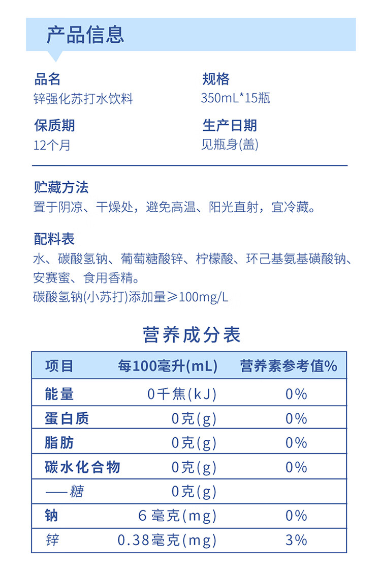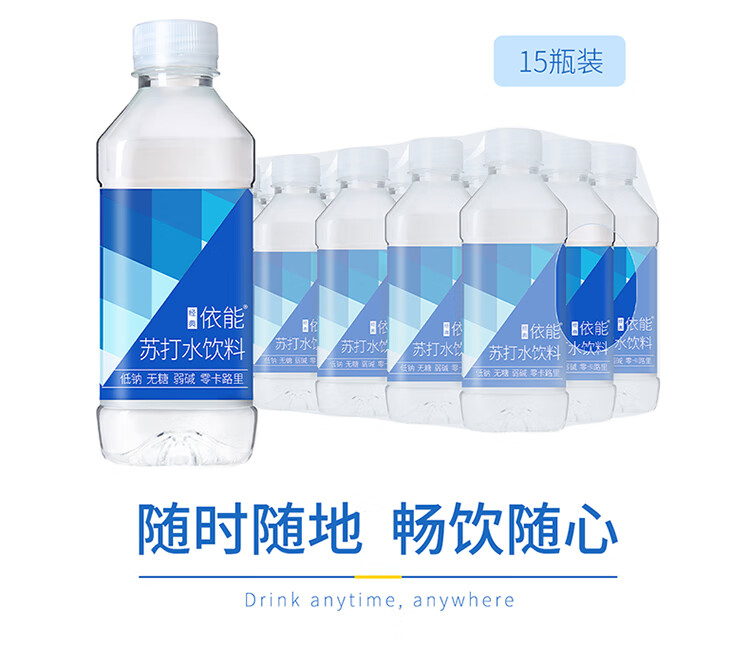 依能 锌强化 无糖无汽弱碱苏打水饮料 350ml*15瓶 塑膜装 饮用水