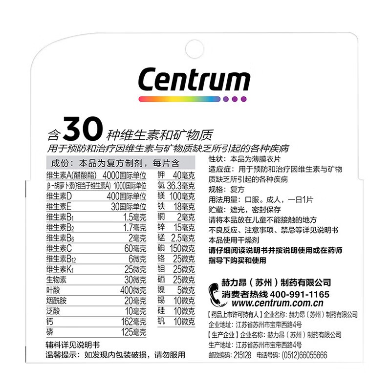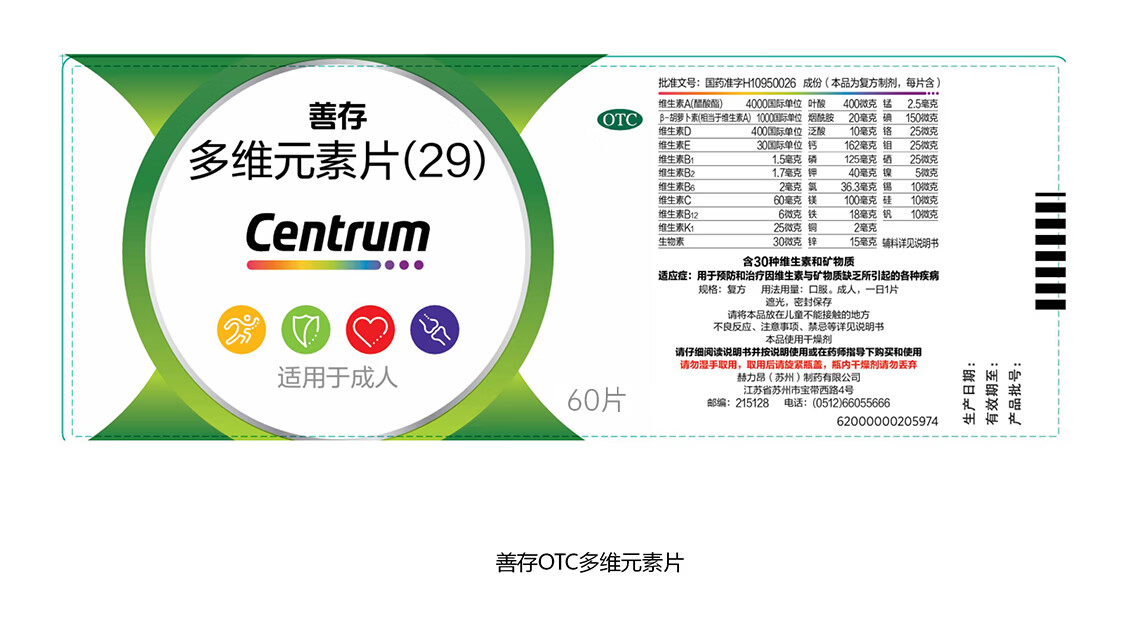 善存多维元素片(29) 60片OTC成人补充30种复合维生素d叶酸备孕期维生素cVb族Ve钙铁锌VA