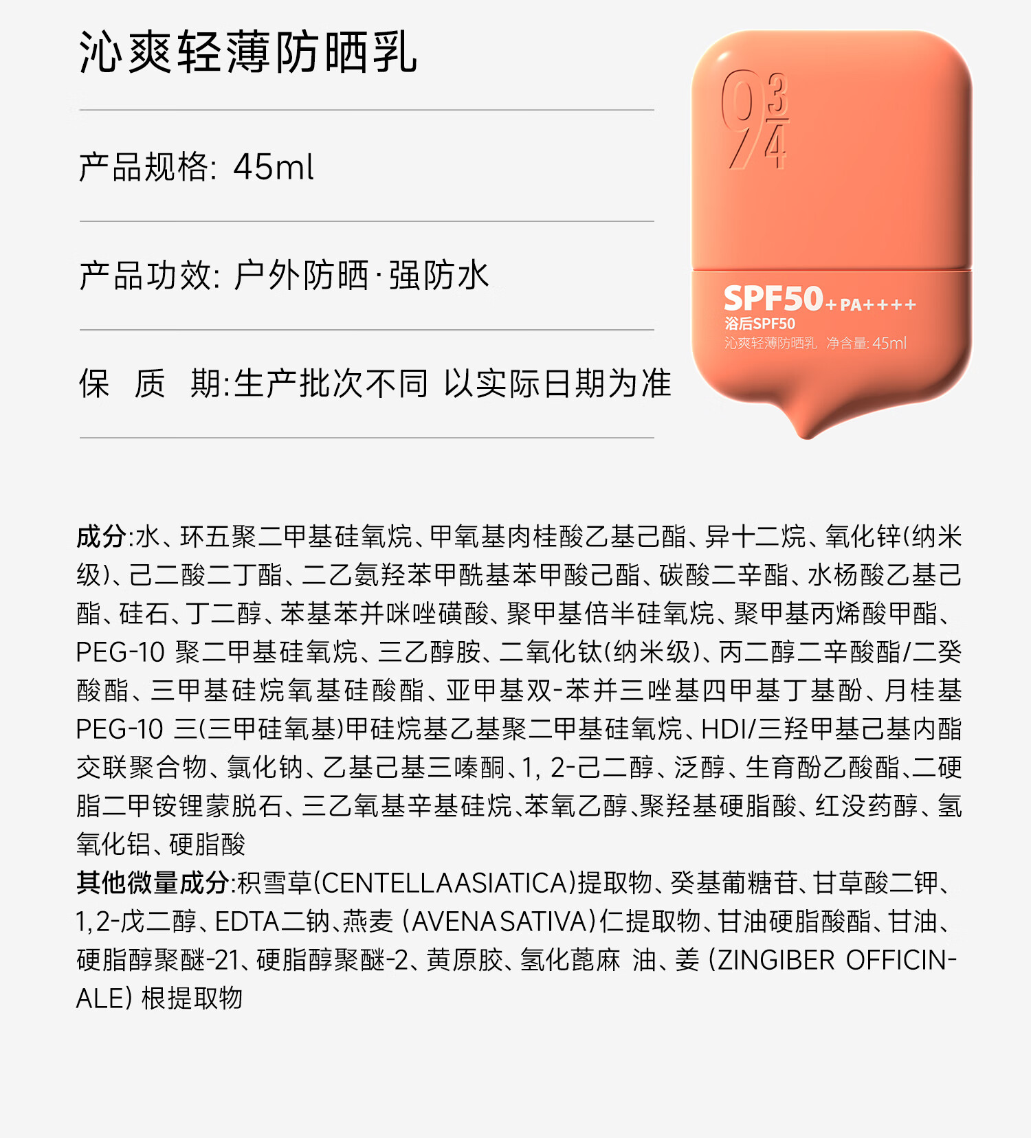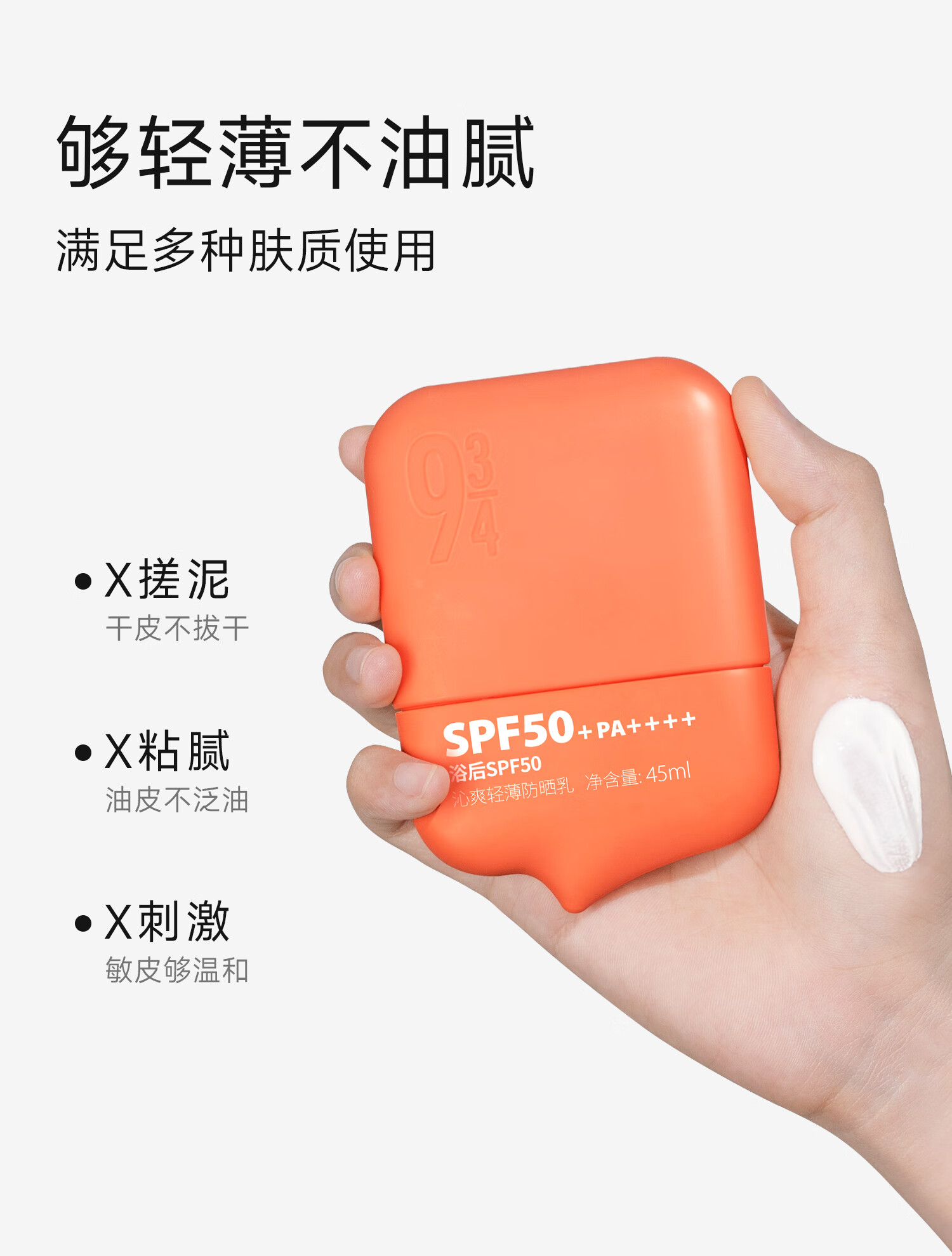 934 沁爽轻薄高倍防晒隔离户外防水防汗油皮防晒SPF50+ 45ml