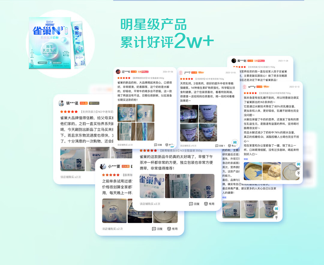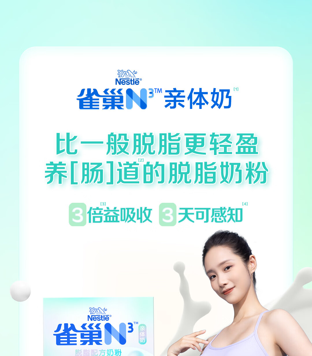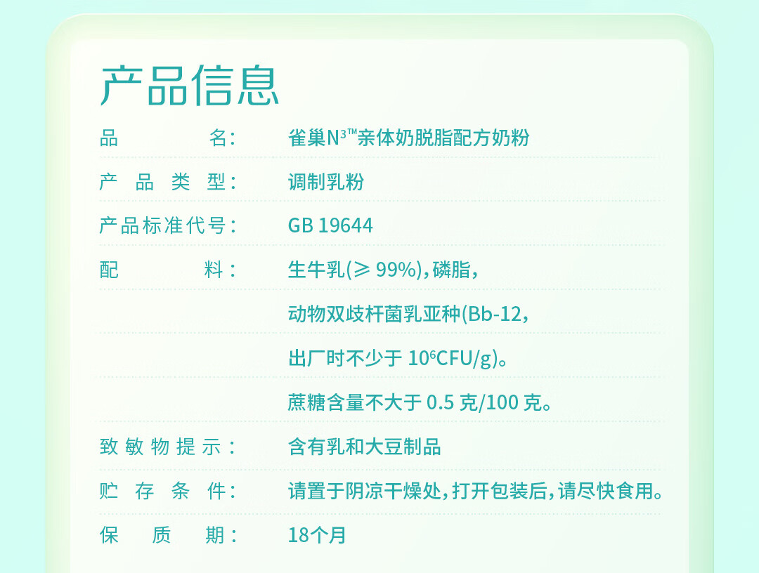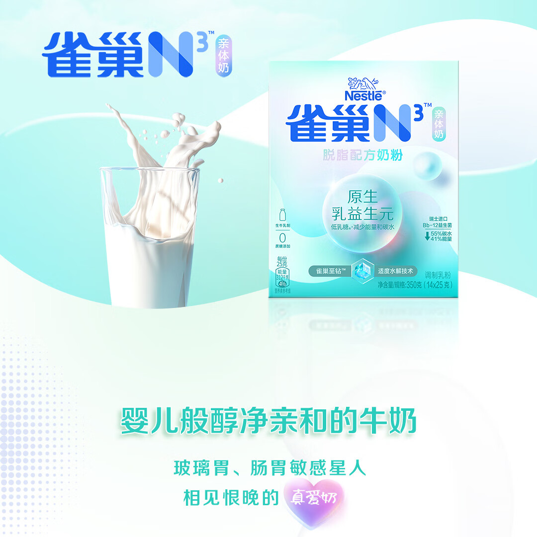 雀巢(Nestle)N3脱脂奶粉50g(25g*2)试喝装 生牛乳益生元乳糖不耐人群 先试后囤