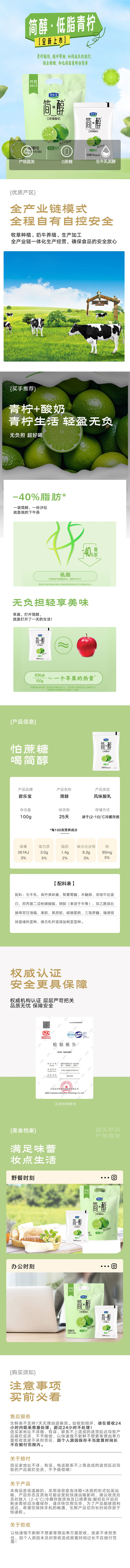 君乐宝简醇 0蔗糖 低脂青柠100g*20袋 源头直发 包邮