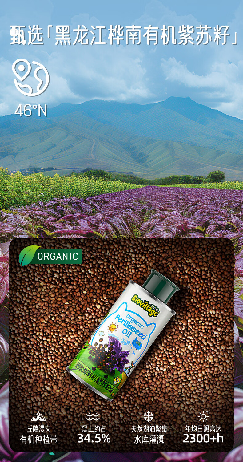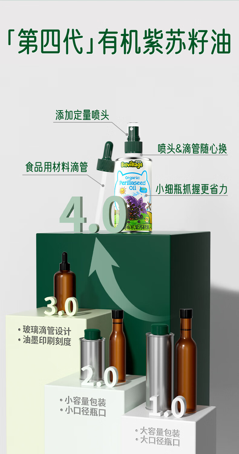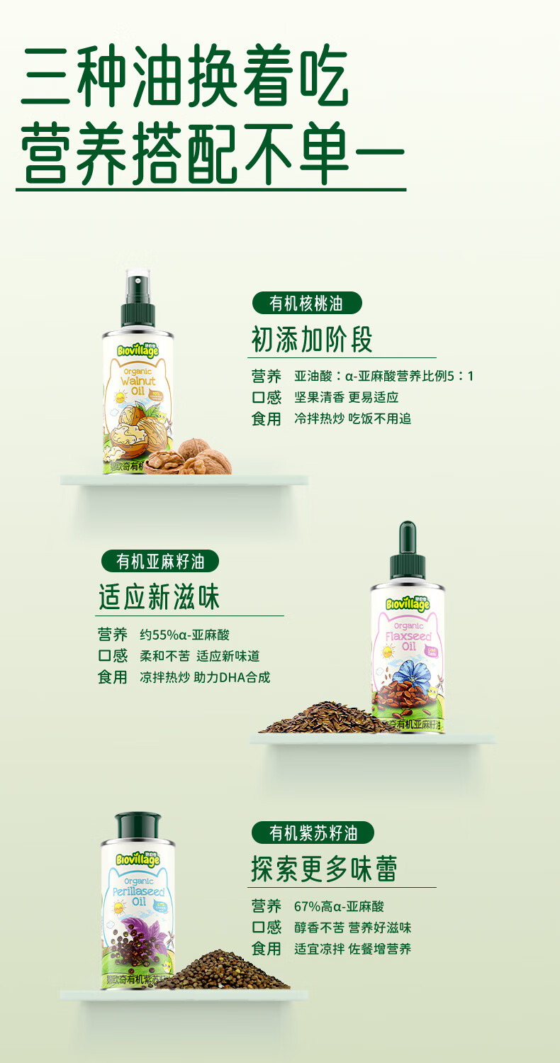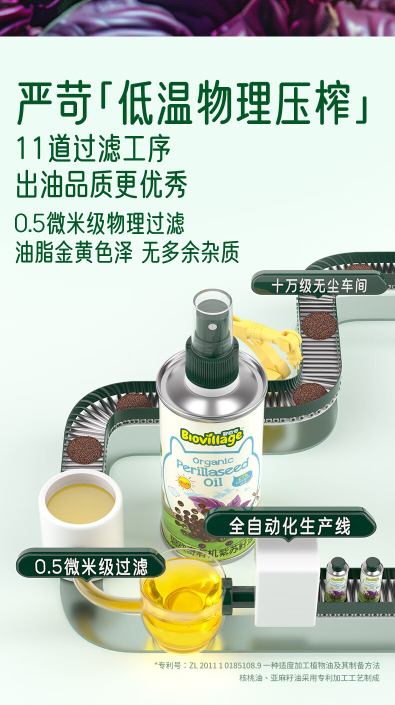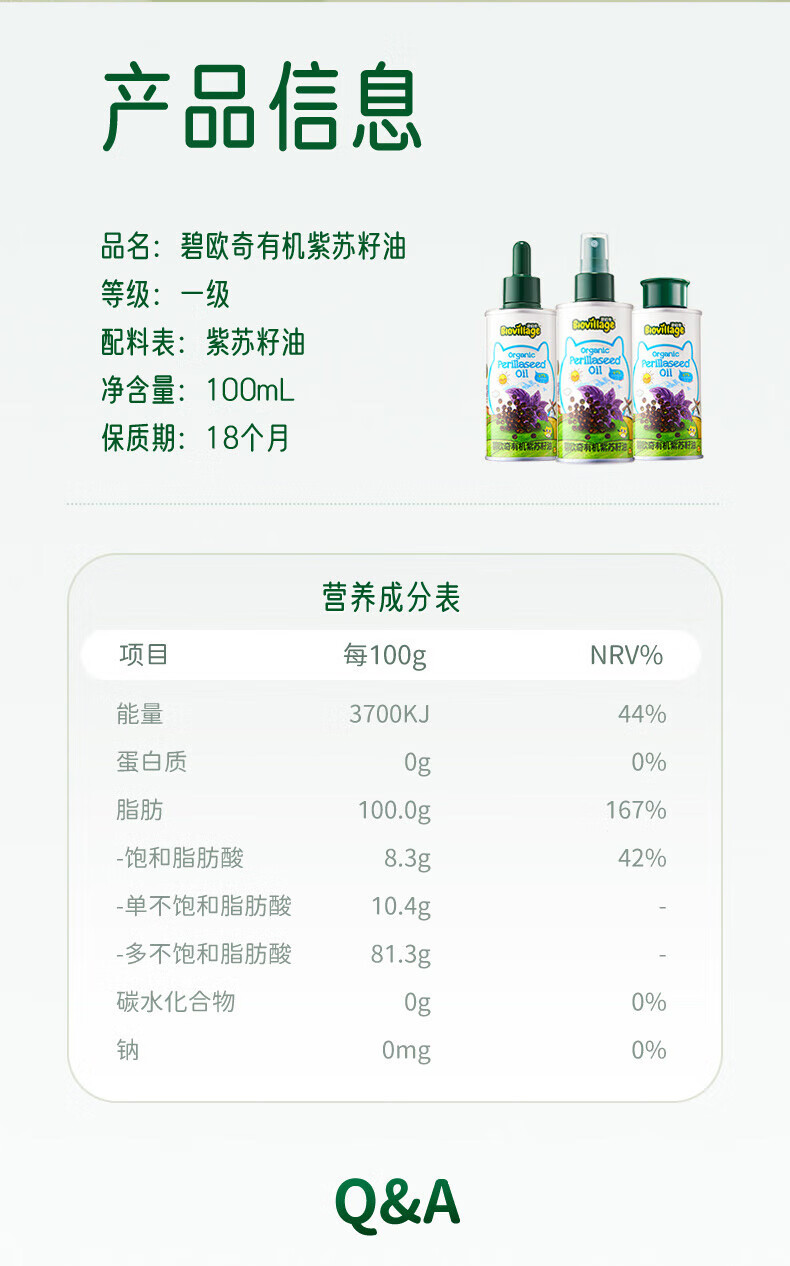 碧欧奇有机紫苏籽油100ml 宝宝辅食用油冷榨滴管控量