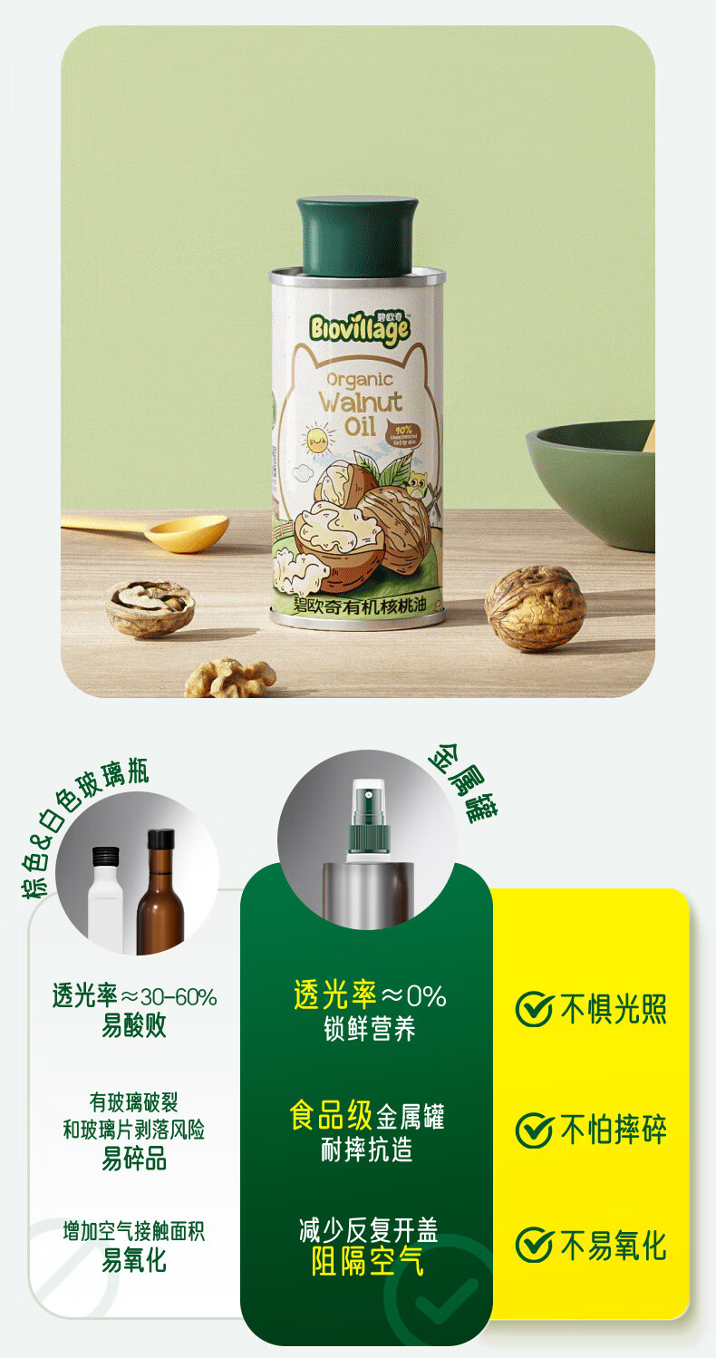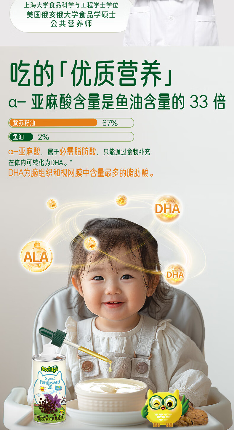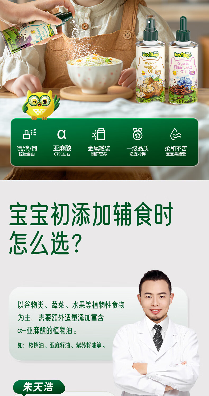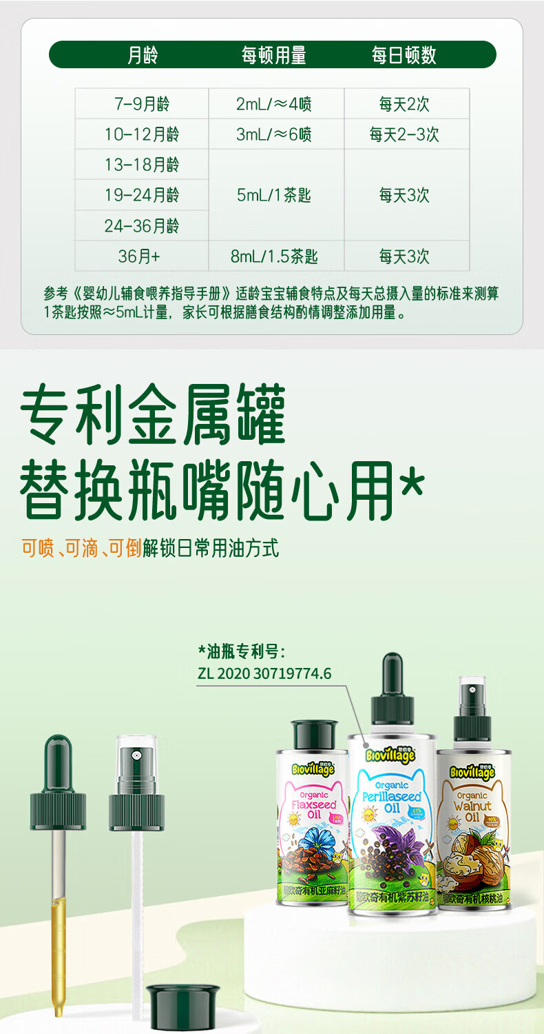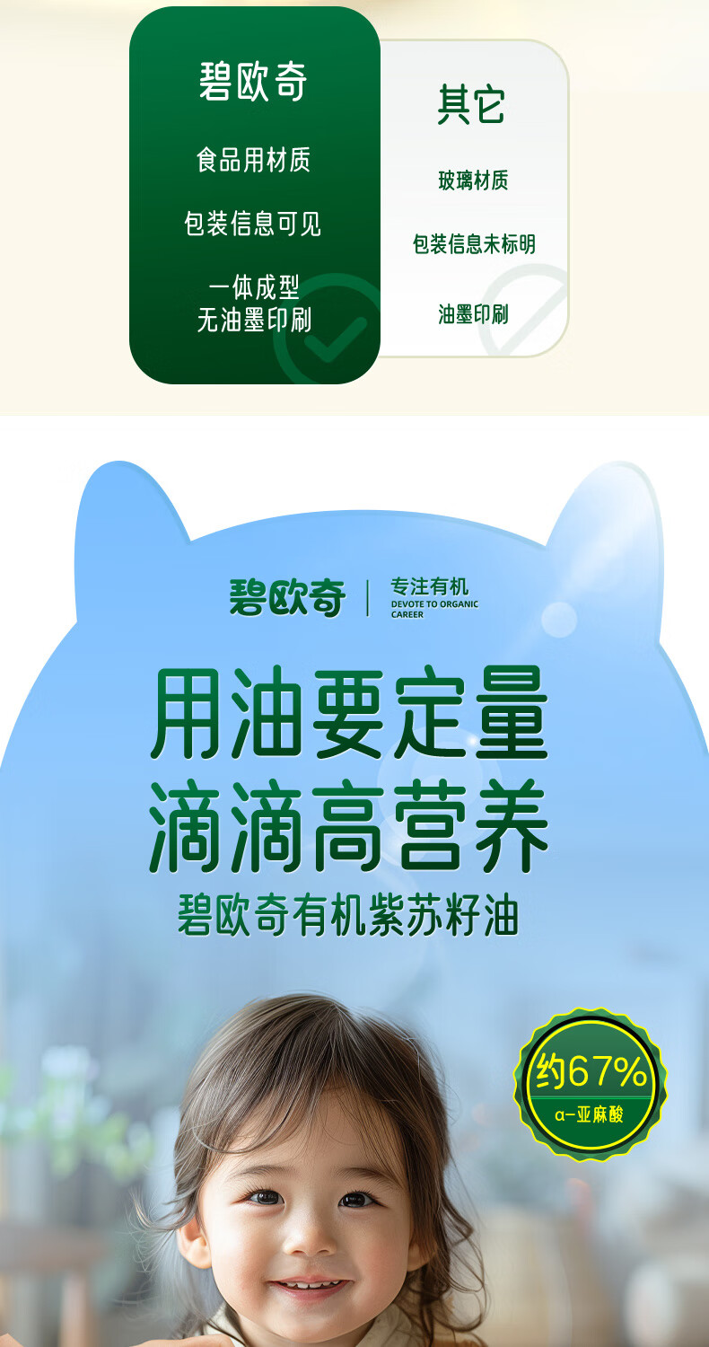 碧欧奇有机紫苏籽油100ml 宝宝辅食用油冷榨滴管控量