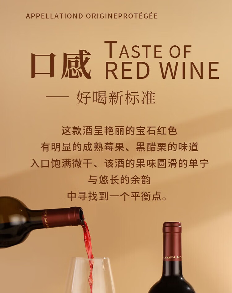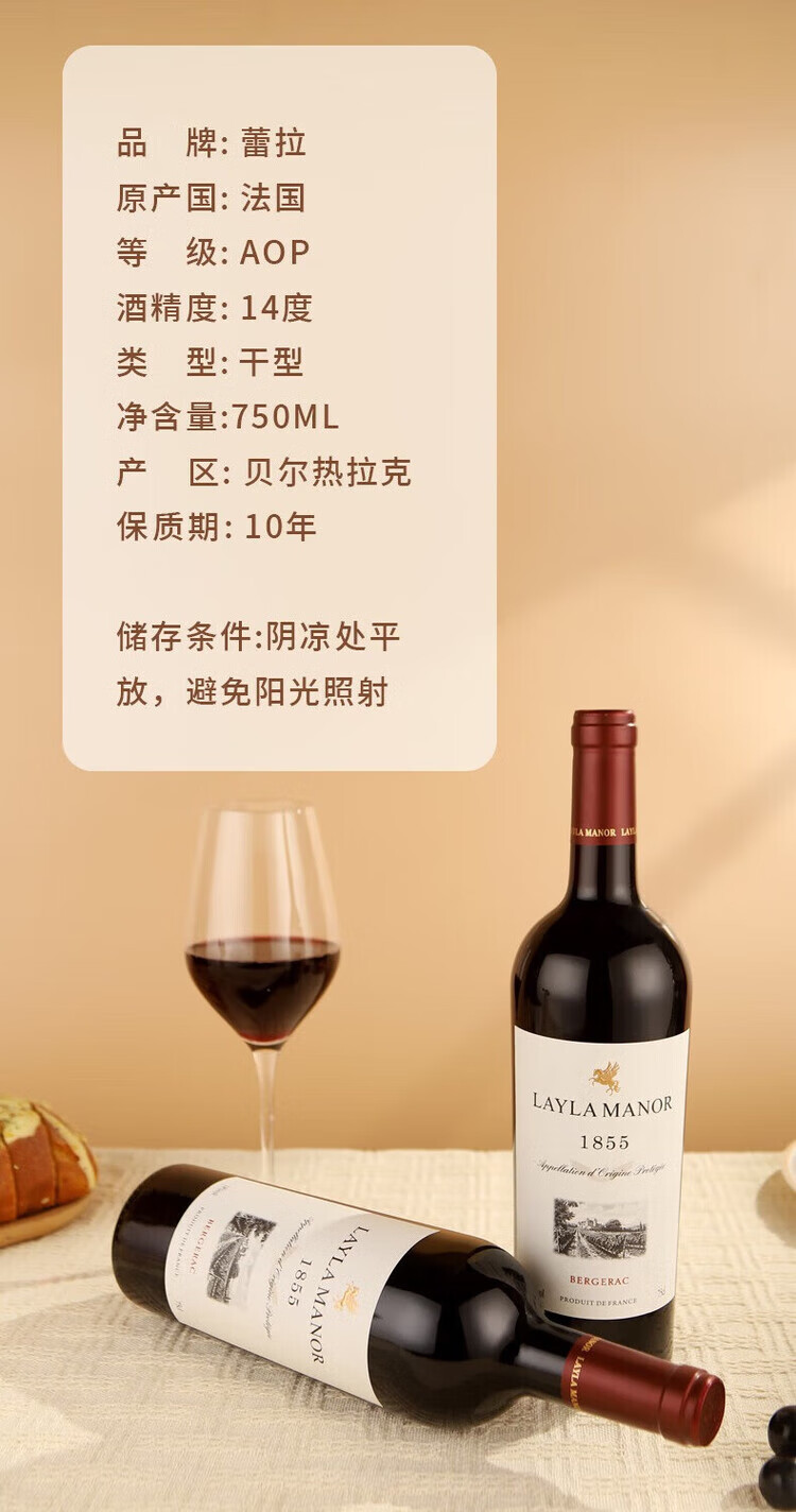 LAYLA【法国蕾拉】进口红酒14度AOP级老藤干红葡萄酒750mlX6支礼盒装