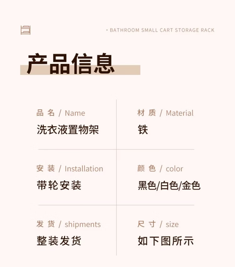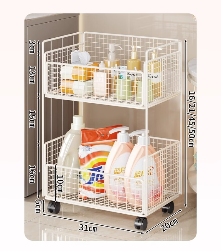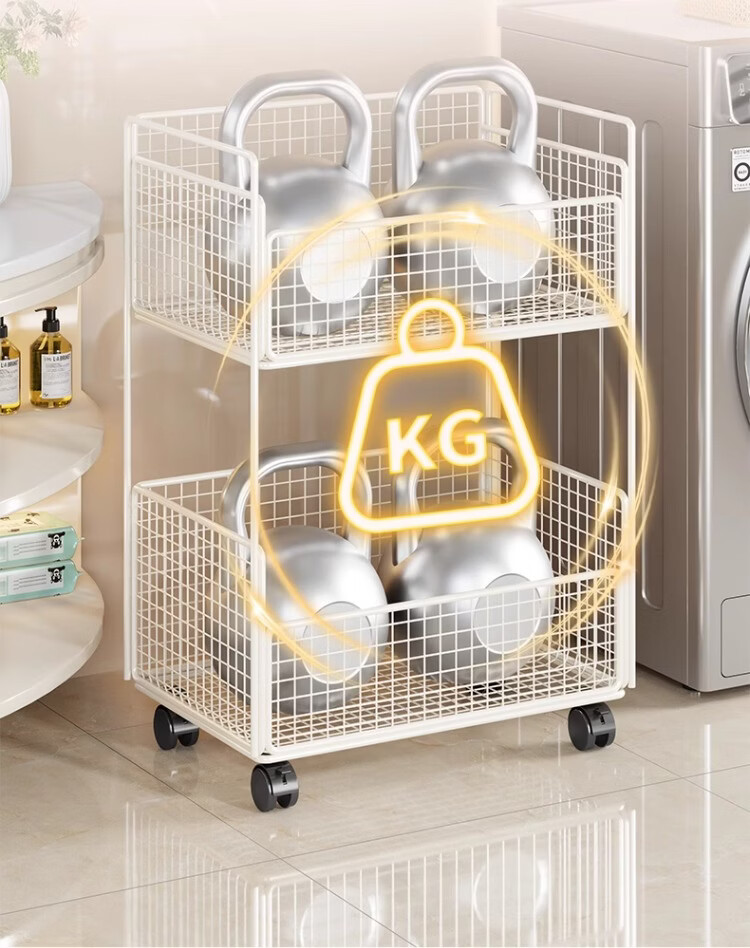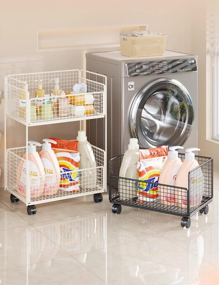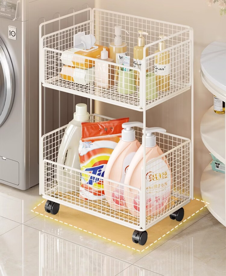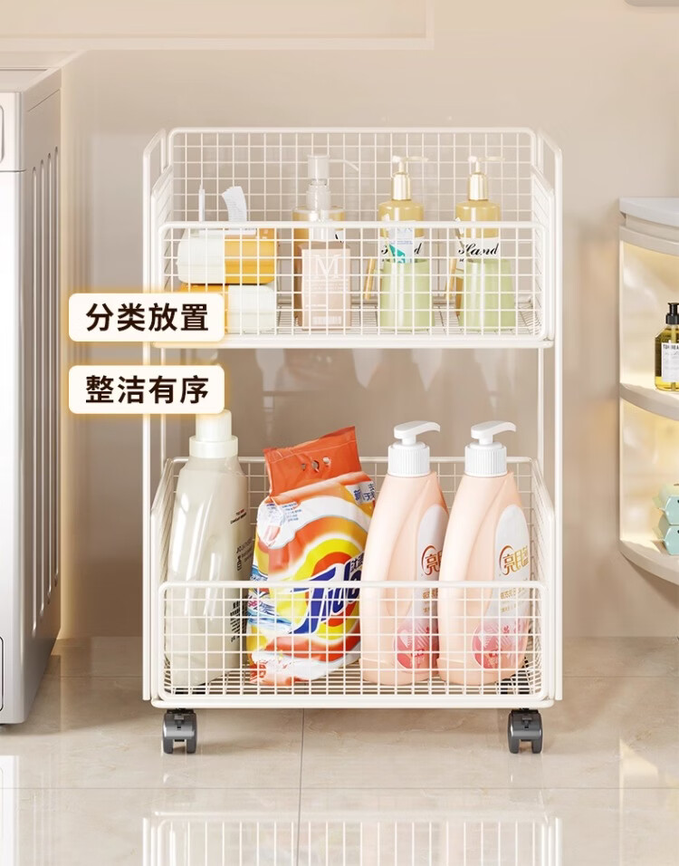 尔思家卫生间置物架洗衣机旁多层放沐浴露架子浴室落地多功能落地收纳架 白色双层移动