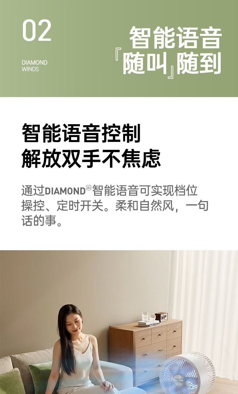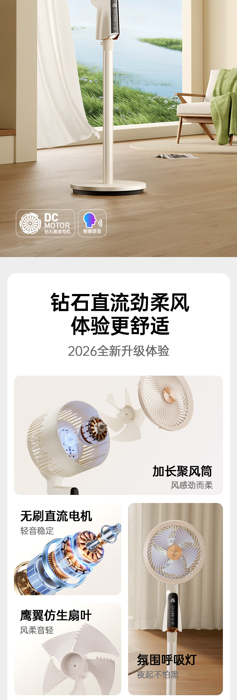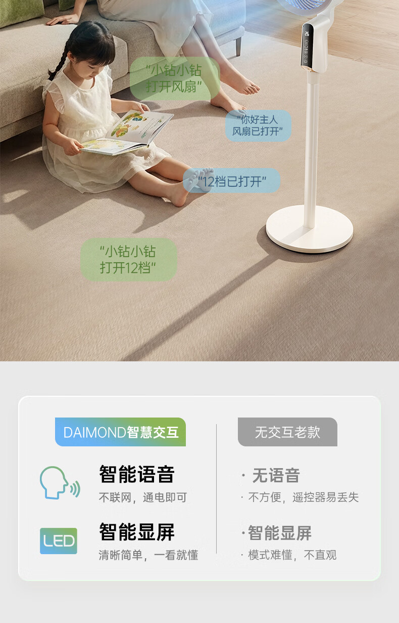 钻石牌(DIAMOND)【直流变频】1级能效电风扇空气循环扇家用卧室语音遥控静轻音台立式电风扇香薰驱蚊落地循环扇YY