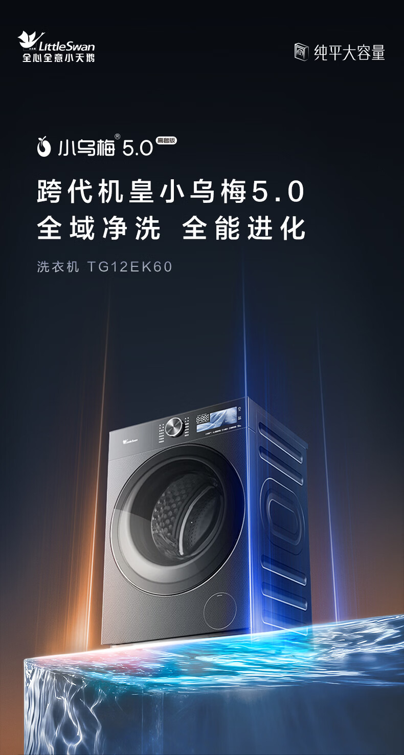 小天鹅(LittleSwan)小乌梅5.0高奢版 AWE同款 滚筒洗衣机全自动 12KG纯平大容量 真1.36洗净比超微除菌气泡水以旧换新 【重磅新品】TG12EK60 滚筒