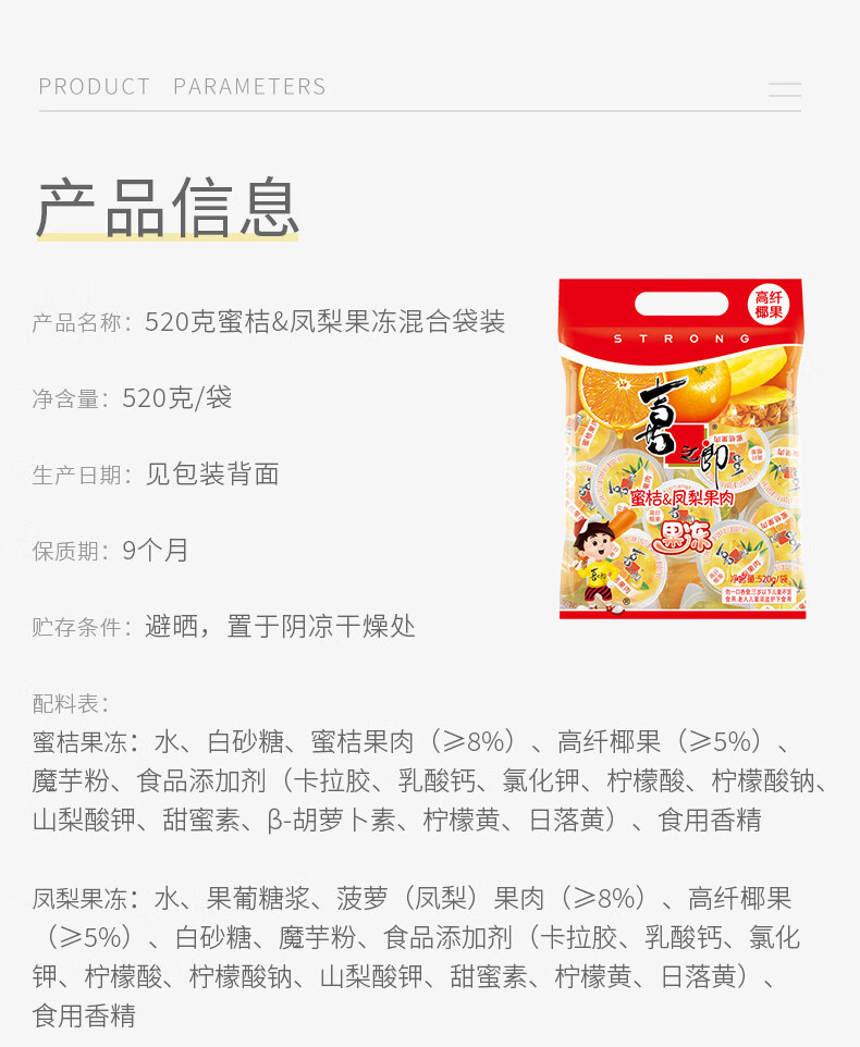 喜之郎蜜桔凤梨椰果果冻15杯共520g 休闲儿童解馋出游小零食下午茶