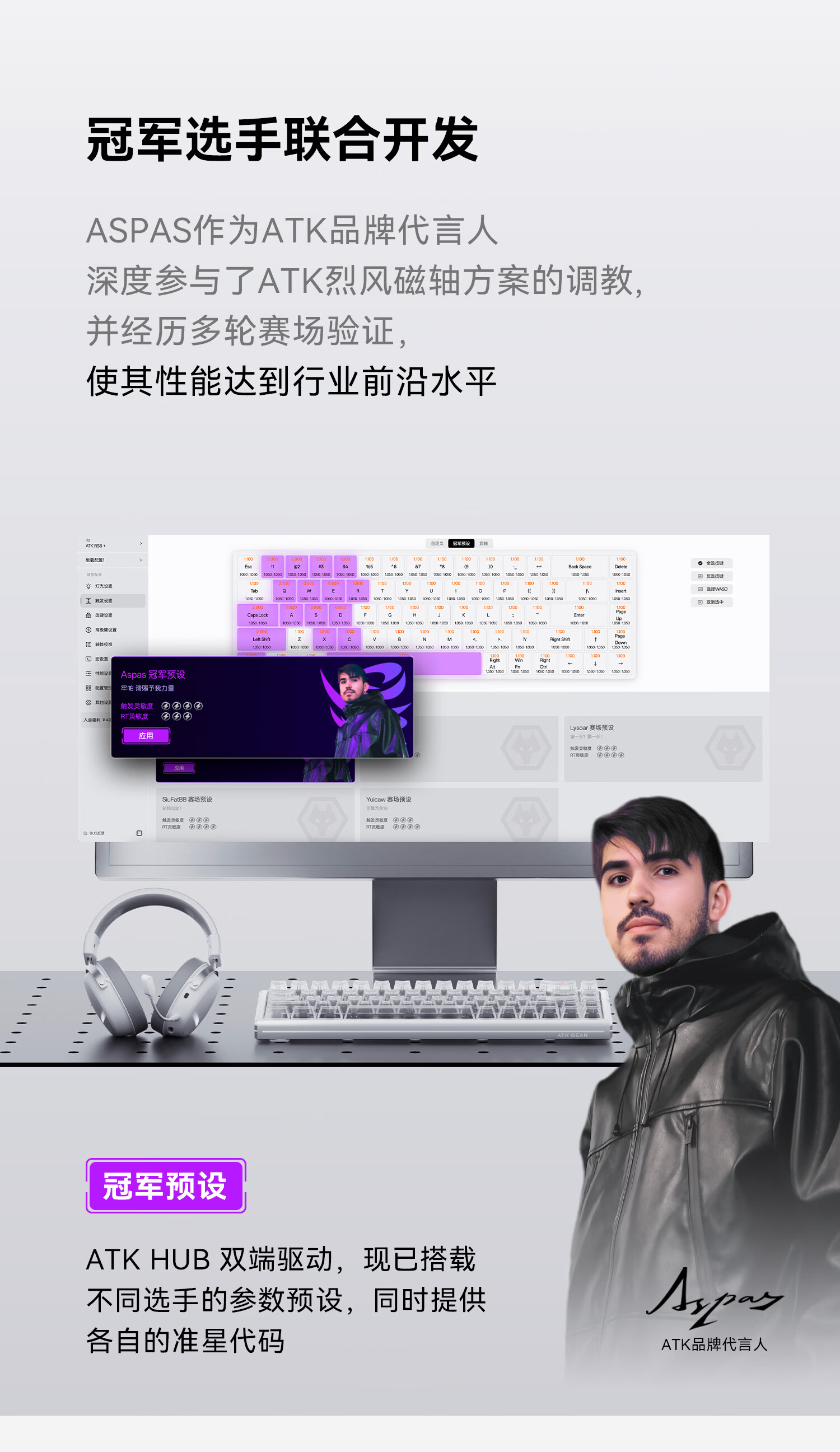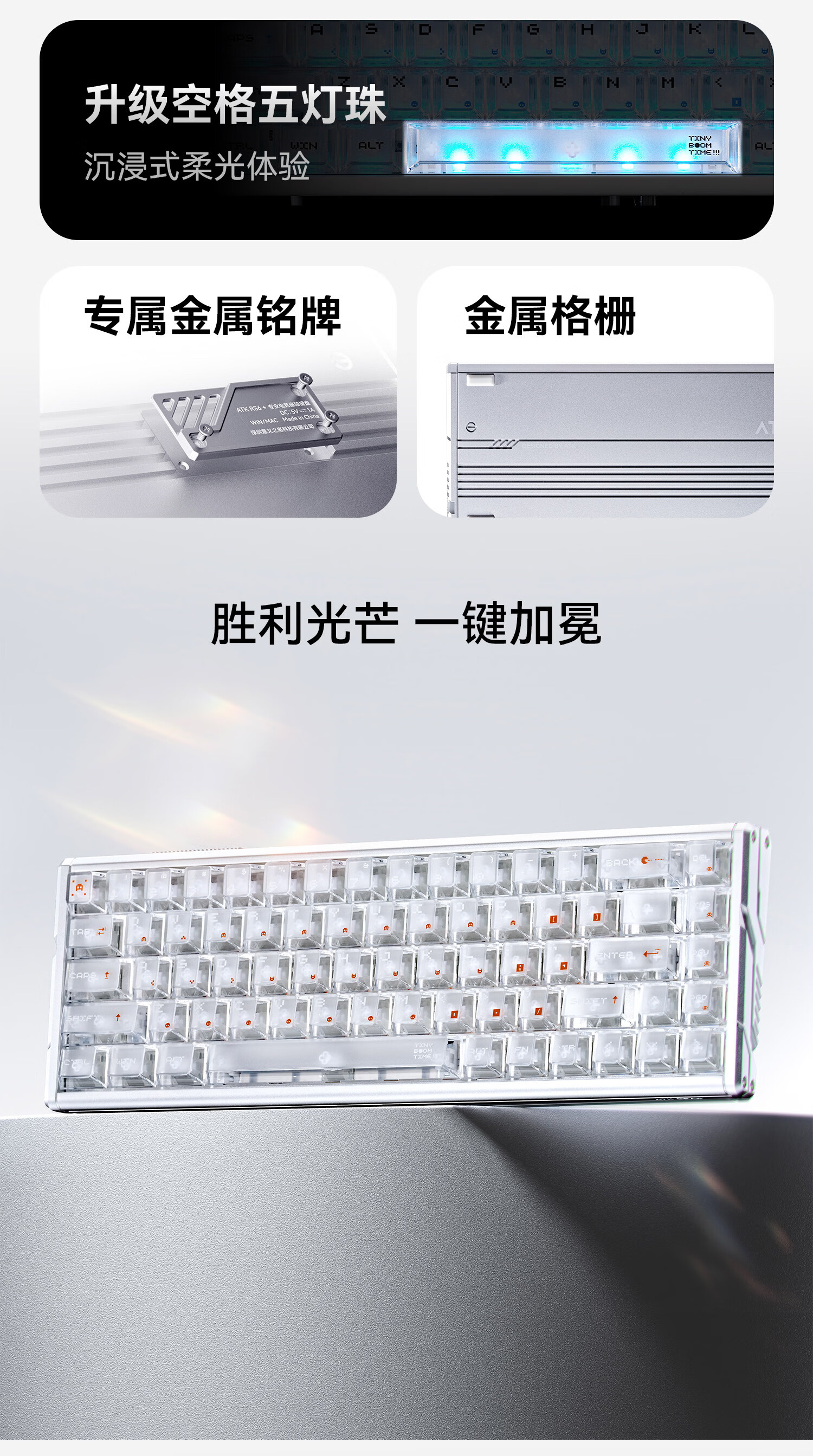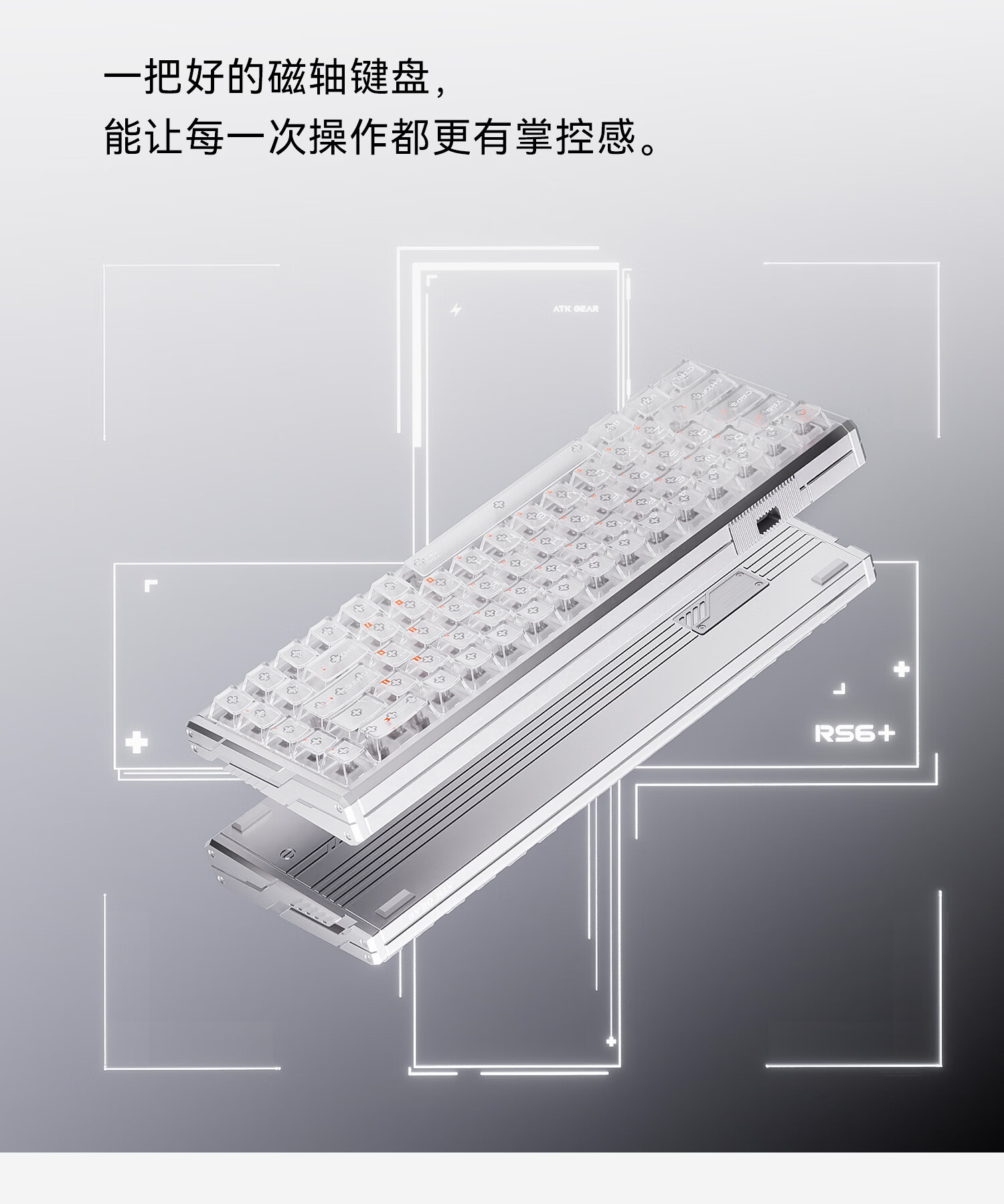ATKRS6+磁轴键盘 RT客制化电竞游戏机械键盘有线全键热插拔办公铝坨坨无畏契约68键 RS6+白武士雪刃轴