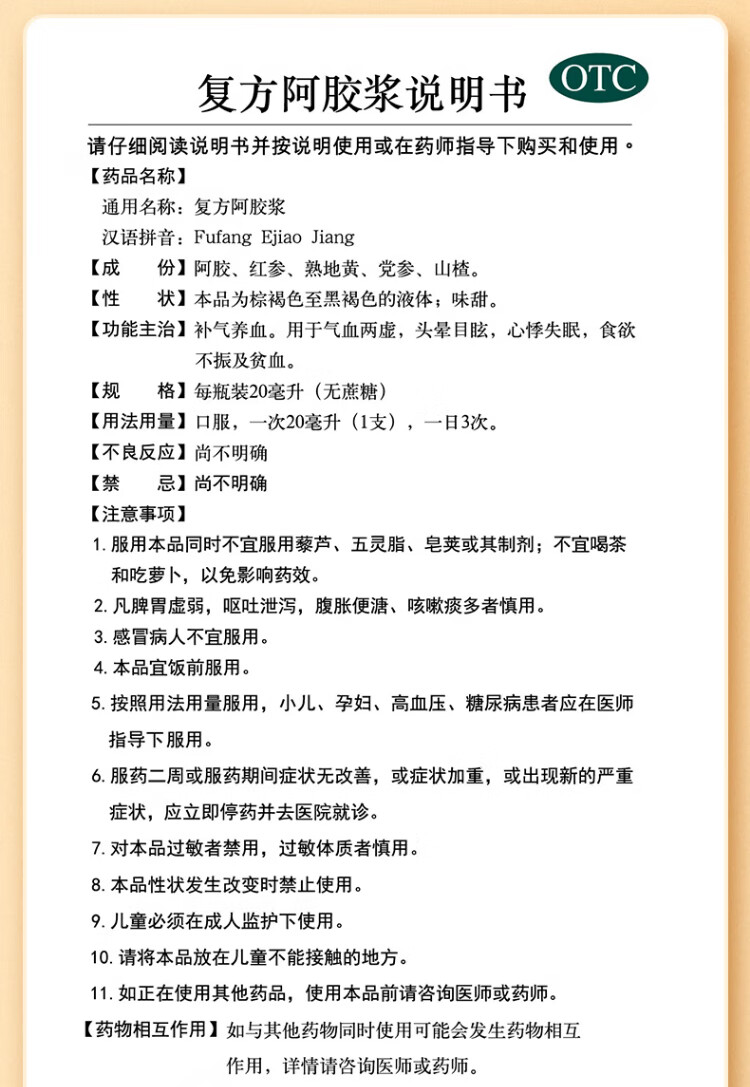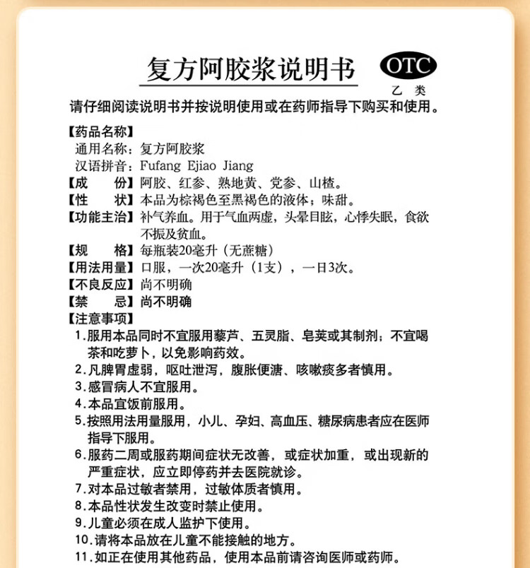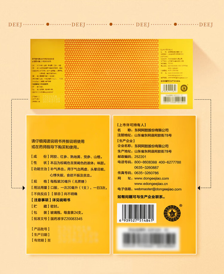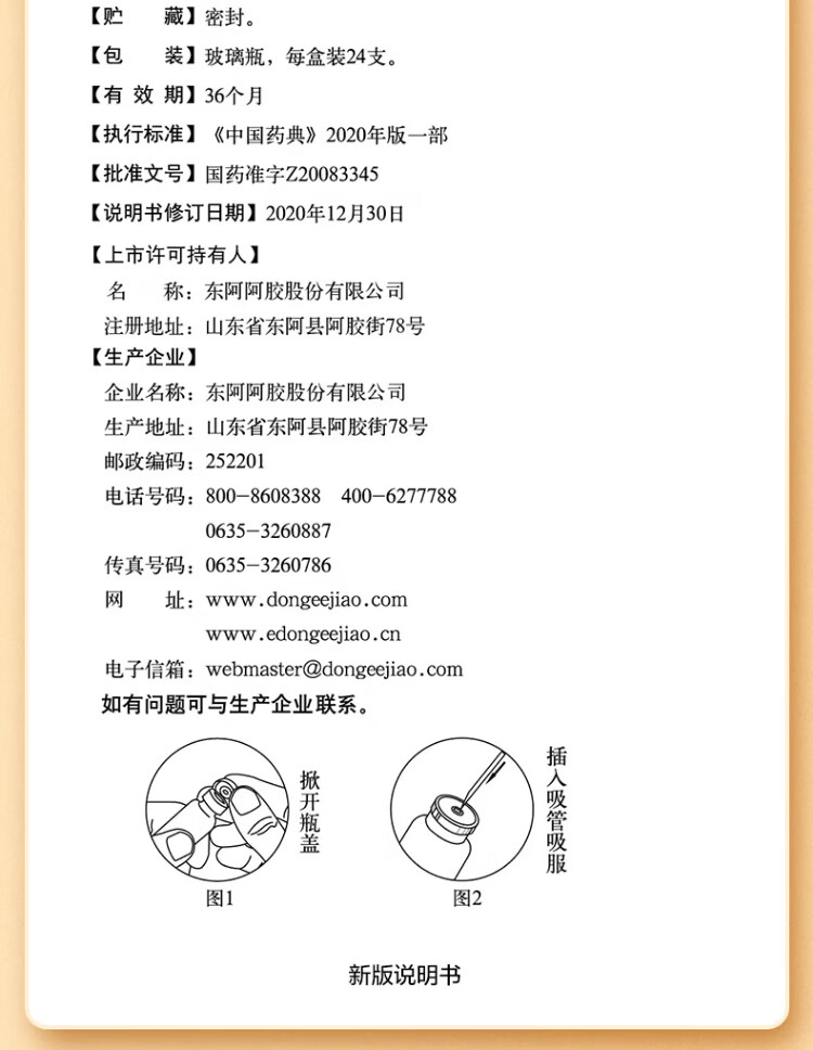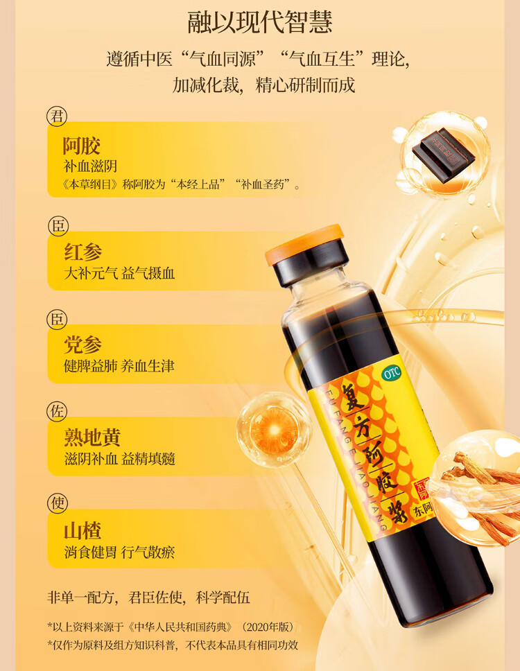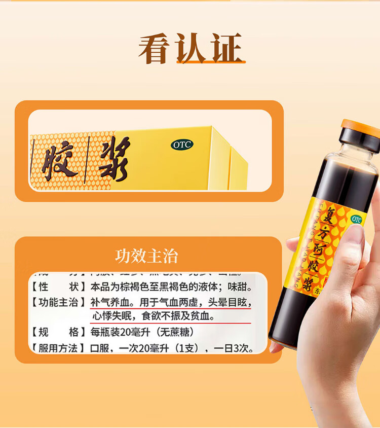东阿阿胶复方阿胶浆 20ml*24支 补气养血 阿胶补血口服液 提高睡眠 失眠 食欲不振 贫血 头晕目眩京东自营