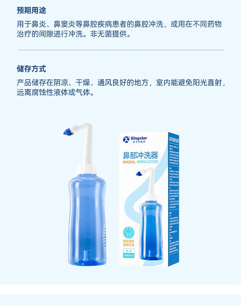 金士达洗鼻器家用成人儿童鼻腔清洗器 鼻炎鼻窦炎鼻部生理盐水冲洗器 鼻腔清洗器500ml套装+洗鼻盐4.5g*30袋
