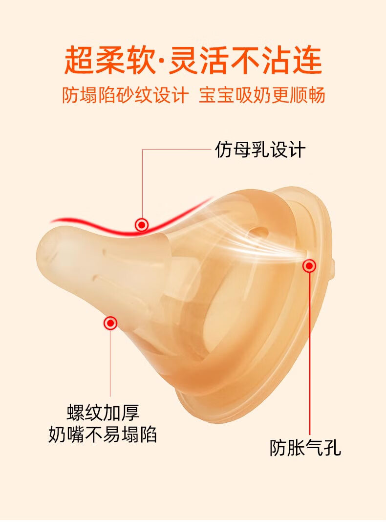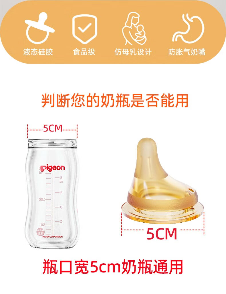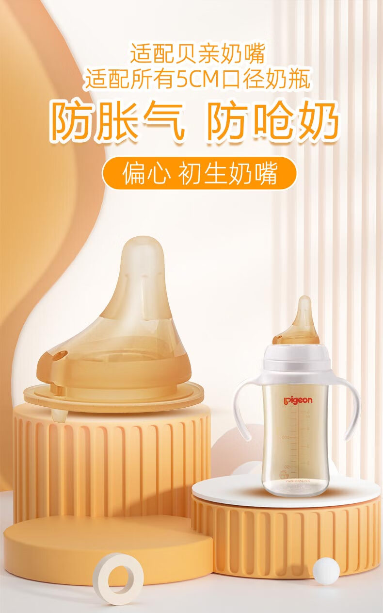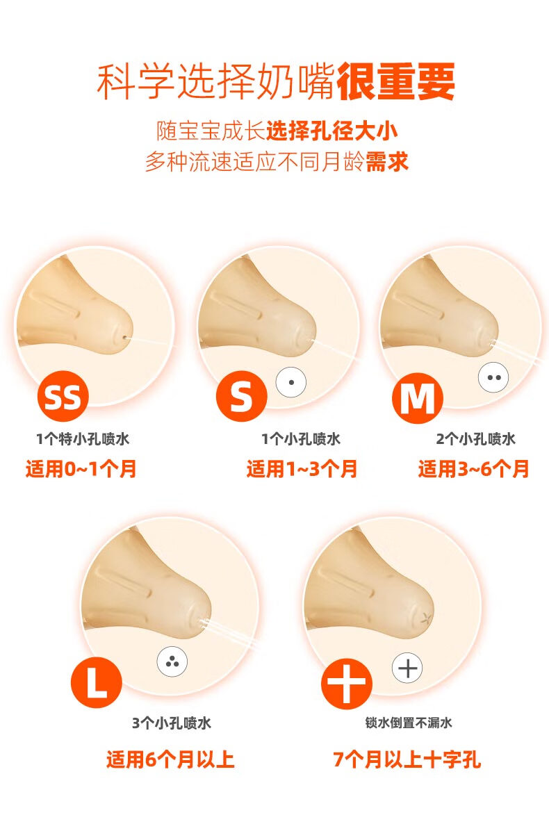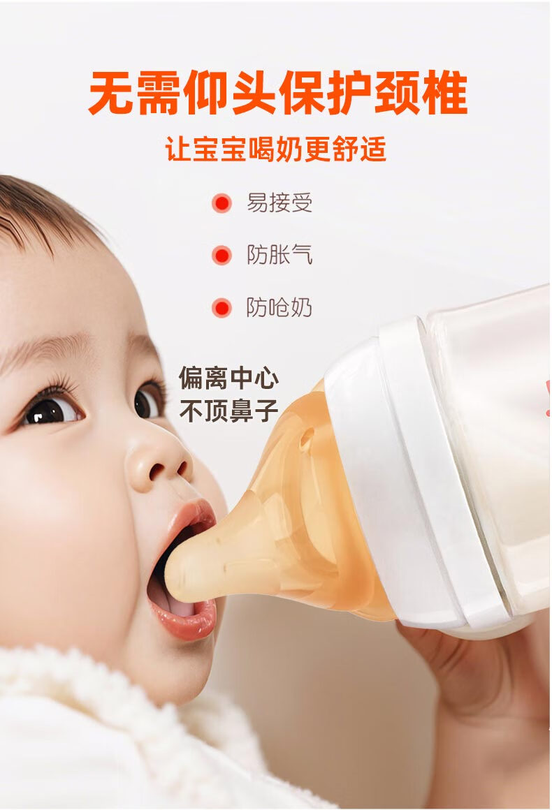 美玲妈妈适用贝亲偏心奶嘴新生儿宽口径0-3-6-12月以上宝宝断奶神器防胀气 内嵌吸管1个