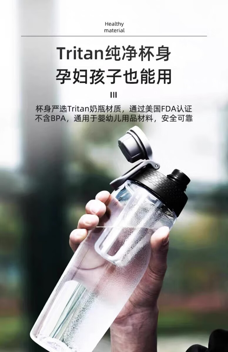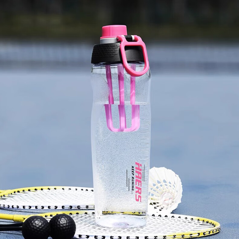 哈尔斯(HAERS)Tritan塑料水杯防摔户外水壶大容量学生杯子夏季便携健身运动水杯 HTR-700-13玫瑰红 700ml