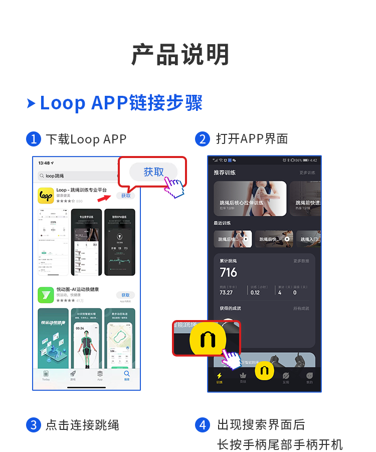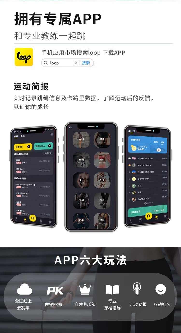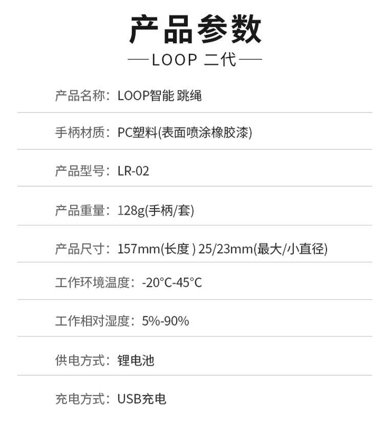 loop 2代智能燃脂蓝牙计数运动减肥成人儿童体能训练专业无绳钢丝跳绳 标配L