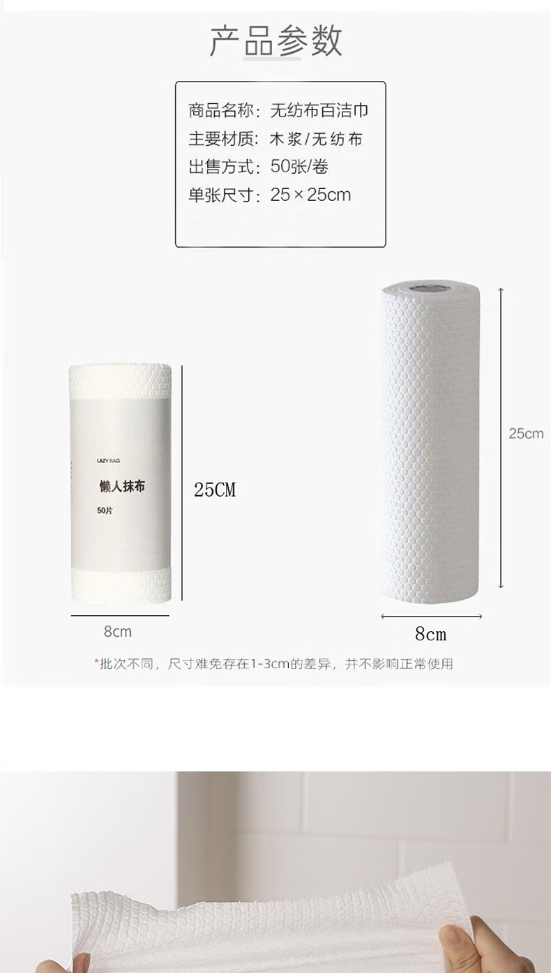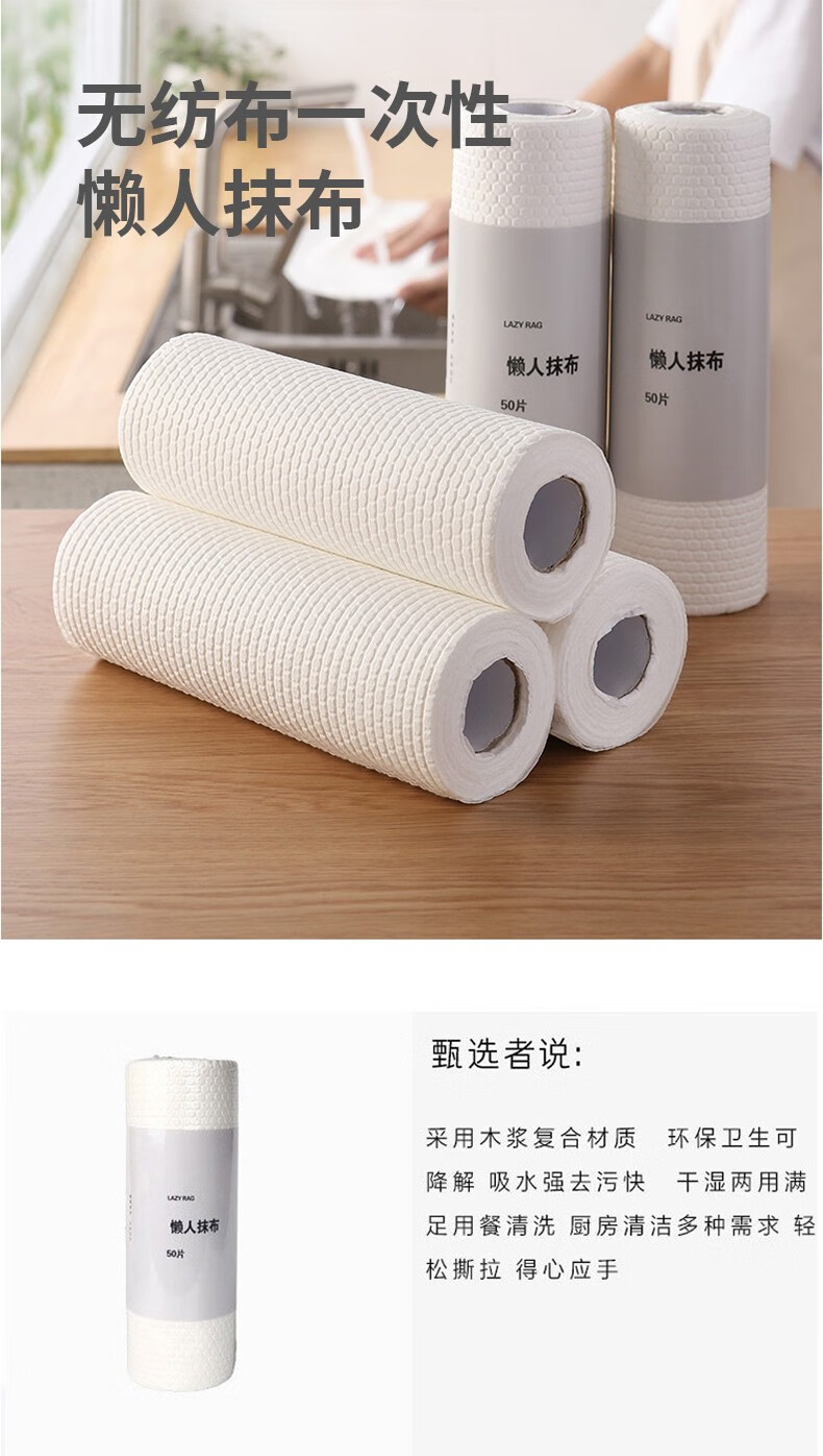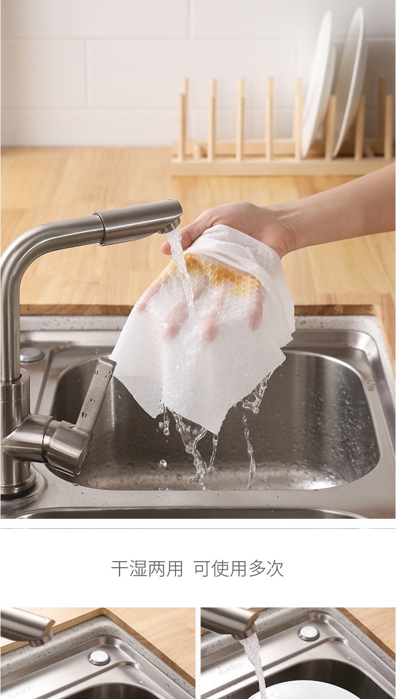 LIUIUSU 懒人抹布 家用一次性抹布无纺布强吸水不掉毛 厨房百洁布洗碗巾 3卷150片(单片25*25cm)
